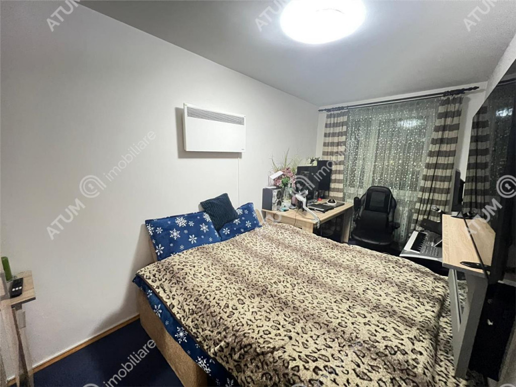 Va prezentam un apartament cu 3 camere decomandate si 2 balcoane, pozitionat la etajul 3 al unui imobil cu doar 4 etaje, situat in zona Mihai Viteazu din Sibiu. Apartamentul are 63 mp utili si este compus din doua dormitoare de aproximativ 12.00 mp fiecare, o camera de zi spatioasa, bucatarie, hol si baie. Separat de suprafata utila acesta dispune de 2 balcoane, unul deschis cu acces dintr-un dormitor, iar al 2-lea inchis si cu acces din bucatarie unde este amenajat locul de gatit. Locuinta beneficiaza de un design interior modern si detine ca dotari usa de acces din metal, tamplarie pvc cu geam termopan, parchet din lemn masiv, gresie, faianta, cada de baie, usi interioare din pvc, centrala termica, calorifere mixte. Apartamentul mai beneficiaza si de alte dotari cum ar fi aer conditionat in living, masina de spalat rufe, cuptor electric, plita gaz, hota, frigider, masina de spalat vase, centrala proprie marca Viessmann si calorifere. Situat in zona Mihai Viteazul, aveti acces facil la diverse puncte de interes precum centre comerciale, scoli, parcuri si mijloace de transport in comun, facilitand un stil de viata convenabil si activ. Apartamentul se vinde partial mobilat in camere si utilat masina de spalat rufe, cuptor electric, plita pe gaz, frigider si hota. Valoarea de achizitie a locuintei este de 133.000 euro negociabil. ID intern: 3123.