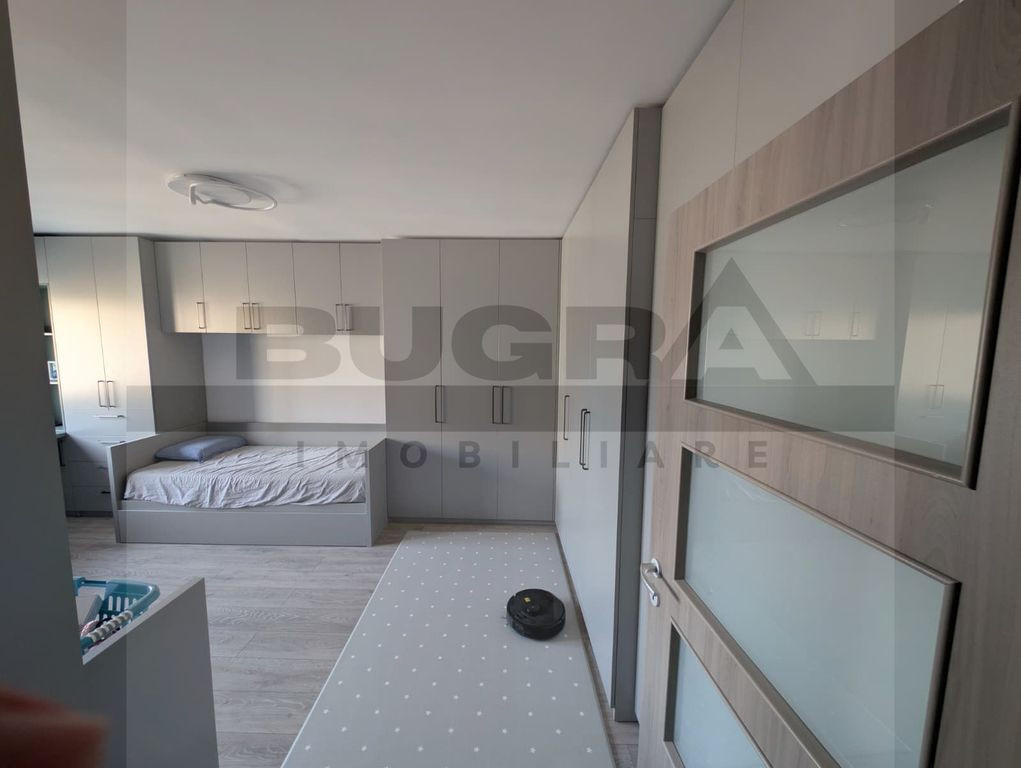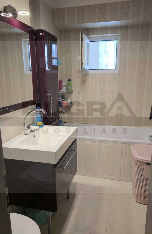 Bugra Imobiliare ofera spre vanzare un apartament de 3 camere decomandate, 2 bai, 3 balcoane, in cartierul Marasti, zona Cinema Marasti, ideal pentru o familie. Locație – aproape de Iulius Mall, FSEGA, magazine, scoli, farmacii. Conexiuni prin trasportul in comun cu aproape toate zonele din oras. Perfect pentru locuit sau investiție Suprafața utila: ~80mp (74.98mp initiali + integrarea in spatiu locuibil a 2 balcoane cu o suprafata cumulata de ~5mp) Etaj 7/8. Bloc cu lift Compartimentare inteligenta și moderna: * 3 Camere * Bucatarie spațioasa (12mp)- cu loc de luat masa. Dotata cu masina de spalat vase, plita inductie, cuptor electric * Baie mare, cu cada si geam. * Baie mica functionala * Hol mare si incapator (~13mp) * Balcon mare, cu multe spatii de depozitare, inchis cu termopan. Apartamentul a fost renovat complet in 2014 (instalatie termica schimbata complet –calorifere, dar tevile sunt ascunse in sapa); instalatie electrica noua, pe cupru, cu circuite dedicate pentru masina de spalat rufe, plita si cuptor; pereti tencuiti, gletuiti si zugraviti; tamplarie termopan cu 3 foi de sticla; gresie, faianta). Centrala termica schimbata in 2019 (Viessmann Vitodens 100). Mobila este realizata la comanda, Essenza Mobili si Tandem. Alte avantaje: * Parcare cu abonament * Boxa pentru depozitare Va asteptam cu drag la vizionari!