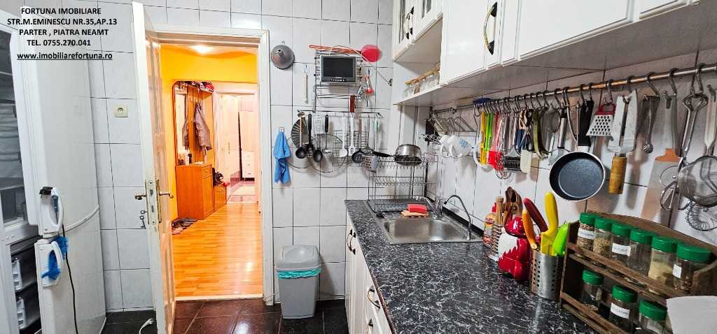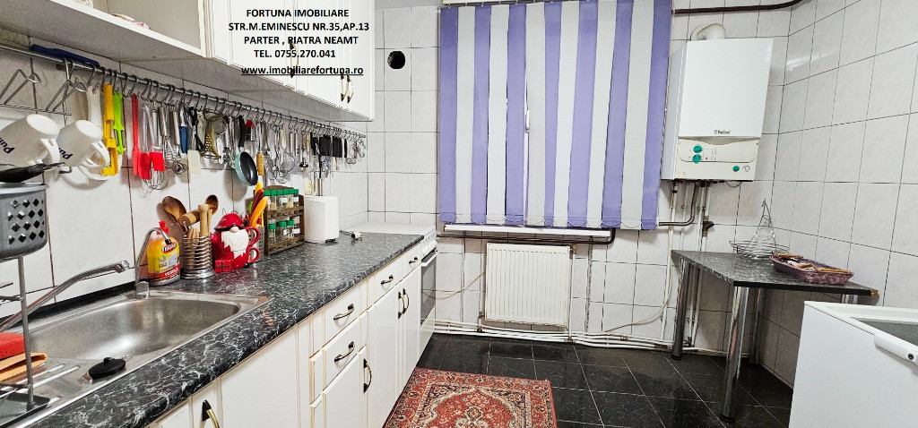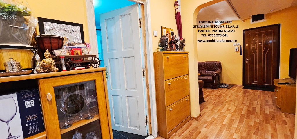 APARTAMENT 3 CAMERE DECOMANDATE, ETAJUL 2, CU MULTIPLE IMBUNATATIRI, BOXA SI LOC DE PARCARE, ZONA CALEA ROMANULUI, 85.000 EURO Pentru a veni în întâmpinarea celor aflați în căutarea unui cămin confortabil, ce răspunde tuturor categoriilor de vârstă, FORTUNA IMOBILIARE vă oferă posibilitatea să optați pentru acest apartament cu 3 camere decomandate, situat la etajul 2, în bloc cu 4 etaje ( fără vecini frontali ), construit în anii „80”. Imobilul, cu suprafața utilă totală de 73,20 mp, este prevăzut cu multiple îmbunătățiri: ușă antiefracție, acces controlat prin interfon, termosistem dublu exterior și interior, centrală termică, termopane, uși interioare din lemn masiv, gresie, faianță, parchet, instalațiile electrică, termică și sanitară schimbate. Beneficiază de o bună compartimentare: hol, 2 băi ( cu aerisire naturală ), 2 dormitoare, bucătărie, cameră de zi și balcon tip logie. Deține boxă și loc de parcare. Poziționarea sa oferă o ușoară accesibilitate către serviciu (instituții educaționale, centre comerciale și alte obiective de interes relevante pentru rezidenți/chiriași). Preț 85.000 euro. Pentru o prezentare detaliată a acestei oferte, furnizarea unor informații suplimentare referitoare la situația juridică / identificarea imobilului și programarea unei vizionări, vă invităm la sediul nostru, Fortuna Imobiliare, situat pe str. M. Eminescu, nr. 35, ap. 13, parter, lângă fostul Tribunal, tel. contact 0755.270.041. Your comfort is our priority ! Oferta noastră completă o găsiți aici: https://imobiliarefortuna.ro/