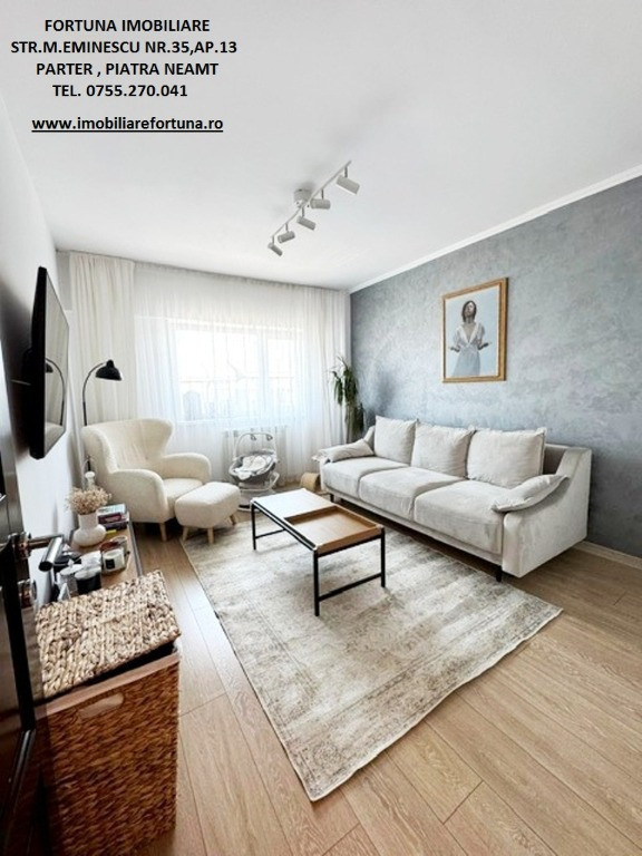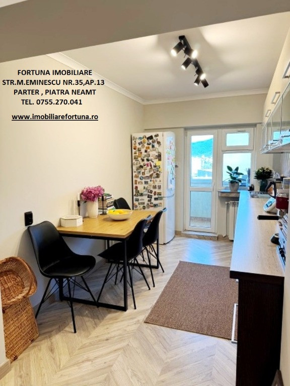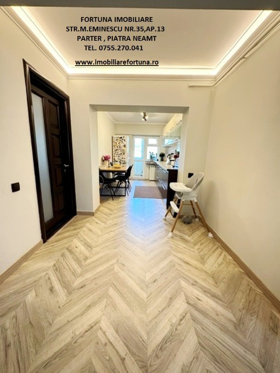 APARTAMENT CU 3 CAMERE DECOMANDATE, SITUAT ÎN ZONĂ ULTRACENTRALĂ - BD. REPUBLICII, 112.000 EURO Dacă vă doriți o investiție sigură și inteligentă pentru viitorul dumneavoastră, FORTUNA IMOBILIARE vă propune acest imobil situat pe Bd. Republicii, la etajul 4, cu acoperiș nou, renovat integral cu materiale de calitate superioară - bun gust si rafinament -, răspunzând unor cerințe / exigențe sporite de confort. Apartamentul are o suprafață totală de 75,90 mp, fiind compus din hol, dressing, baie cu aerisire naturală, cameră de zi, 2 dormitoare, bucătărie și balcon. Se remarcă printr-o compartimentare inteligentă, oferind încăperi generoase, puse în valoare prin finisajele alese personalizate pentru fiecare spațiu în parte. Este renovat integral recent, beneficiind de ușă antiefracție, acces controlat prin interfon, centrală termică, tâmplărie termopan, uși interioare din lemn masiv, parchet triplu stratificat, gresie, faianță, instalațiile electrică, sanitară și termică schimbate etc. Oferă acces către numeroase hub-uri comerciale, centre medicale și alte locuri de interes. Se vinde mobilat si utilat cu tot necesarul unui trai confortabil, așa cum este prezentat în fotografiile anexate. Preț 112.000 euro Întrucât descrierea acestui imobil nu poate fi cuprinsă în câteva rânduri, pentru o prezentare detaliată, oferirea unor informații suplimentare referitoare la situația juridică / identificarea imobilului și programarea unei vizionări, vă invităm la sediul nostru, Fortuna Imobiliare, situat pe str. M. Eminescu, nr. 35, ap. 13, parter, lângă fostul Tribunal, tel. contact 0755.270.041. Your comfort is our priority ! Oferta noastră completă o găsiți aici: https://imobiliarefortuna.ro/