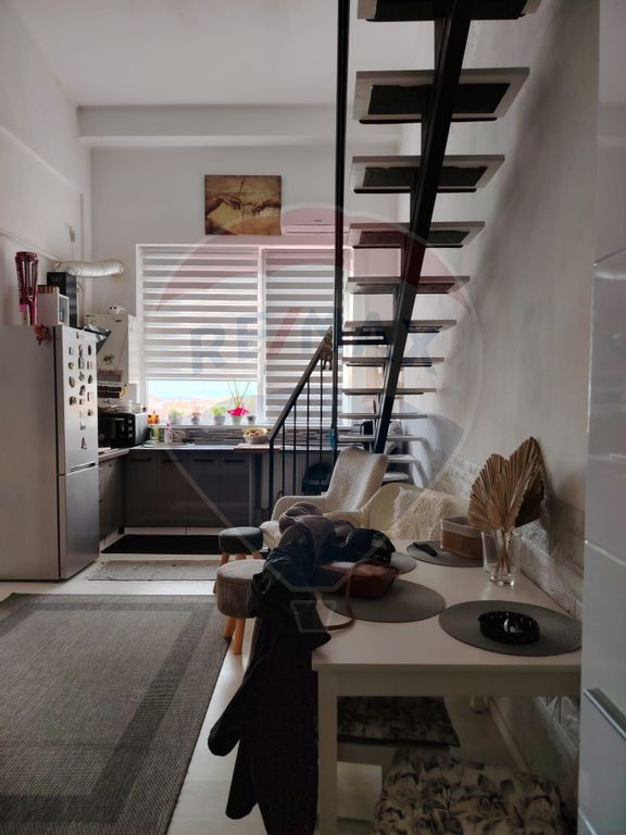 Acest apartament pe două niveluri se remarcă printr-o compartimentare unică și o lumină naturală impresionantă, creând un spațiu armonios și primitor. Situat pe strada Victor Babeș, într-o zonă extrem de accesibilă, la câțiva pași de universitate, Vivo Mall, școli și mijloace de transport, proprietatea îți oferă confortul unui stil de viață urban, cu totul la îndemână. Cu o suprafață construită de 89 mp (71,48 mp utili), apartamentul impresionează prin modul inteligent în care este organizat spațiul, oferind confort și funcționalitate la fiecare nivel. Accesul se face într-un hol primitor, care conduce firesc către zona de zi cu bucătărie open space – un spațiu coerent și bine definit, pus în valoare de suprafețele vitrate generoase ce aduc lumină naturală din plin și creează o atmosferă caldă și relaxantă. Tot la acest nivel se află un dormitor separat, baia și o cameră versatilă, gândită pe două planuri: zona de zi la nivel inferior și zona de noapte la etaj – o soluție ideală pentru intimitate și flexibilitate. Un element distinctiv al proprietății este spațiul de la nivel superior, amenajat deasupra zonei de acces și a băii, conceput ca un living de relaxare – un loc retras, perfect pentru momentele de liniște. Apartamentul este situat la etajul 5, într-un bloc cu lift, beneficiază de aer condiționat și se vinde complet mobilat și utilat – pregătit pentru mutare imediată. Separat, se poate achiziționa un loc de parcare împreună cu boxă de depozitare, la prețul de 11.000 € – un avantaj important într-o zonă atât de bine conectată. Preț apartament: 125.000 € Recomandarea mea: Este perfect pentru cei care apreciază spațiile neconvenționale, bine gândite și luminoase, fie că vorbim despre locuire proprie sau investiție – proximitatea față de universitate fiind un avantaj clar. O proprietate care se remarcă prin atmosferă, compartimentare și lumină. Nu uita de comision 0% pentru cumpărător! Programeaza o vizionare pentru a-l descoperi.