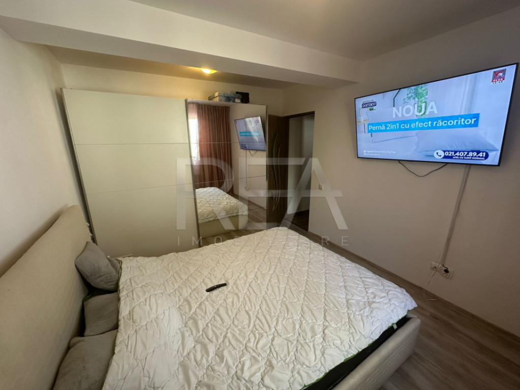 Locuinta este alcatuita din : living , 2 dormitoare , bucatarie , baie , balcon inchis si hol . Se vinde mobilat si utilat cu tot ce se vede in poze mai putin televizoarele si aparatul de cafea.