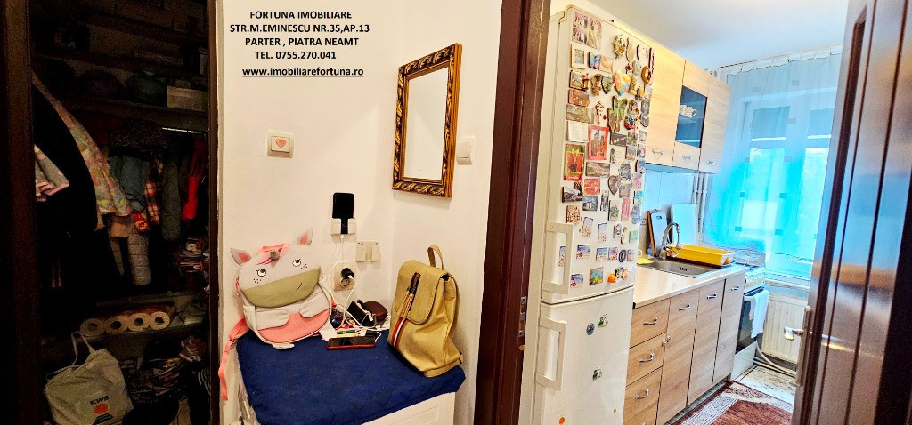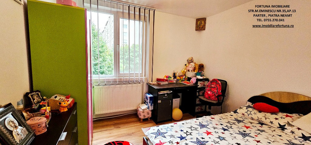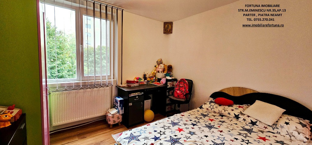 APARTAMENT 3 CAMERE, ETAJUL 2, ZONA ADRIDAN DĂRMĂNEȘTI, 67.000 EURO Oferim spre achiziționare acest apartament cu 3 camere, situat în zona Adridan din cartierul Dărmănești, la etajul 2 / 4, într-o zonă liniștită, cu mult spațiu verde, ferită de zgomotul stradal, oferind o ușoară accesibilitate către serviciu, instituții educaționale, centre comerciale și alte obiective de interes relevante pentru rezidenți/chiriași. Imobilul, cu suprafața utilă de 49,61 mp + 3,49 mp suprafață balcon (suprafața totală 53,10 mp), este luminos și călduros, cu orientare cardinală SUD - EST, fiind prevăzut cu termosistem exterior parțial și îmbunătățiri: ușă antiefracție, acces controlat prin interfon, centrală termică Waillant prin condensare, termopane, uși interioare schimbate, gresie, faianță, parchet, instalațiile (termică, electrică, sanitară) schimbate. Este pe structură semidecomandată, fiind compus din 2 holuri, cameră de zi, 2 dormitoare, baie (cu aerisire naturală), bucătărie și balcon. Dispune de loc de parcare. Se vinde parțial mobilat, iar actele sunt la zi. Preț 67.000 euro Pentru o prezentare detaliată a acestei oferte, furnizarea unor informații suplimentare referitoare la situația juridică / identificarea imobilului și programarea unei vizionări, vă invităm la sediul nostru, Fortuna Imobiliare, situat pe str. M. Eminescu, nr. 35, ap. 13, parter, lângă fostul Tribunal, tel. contact 0755.270.041. Your comfort is our priority ! Oferta noastră completă o găsiți aici: https://imobiliarefortuna.ro/