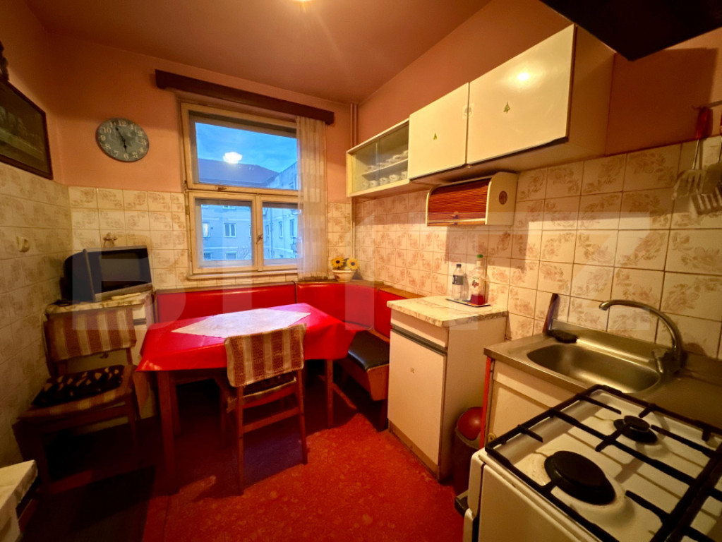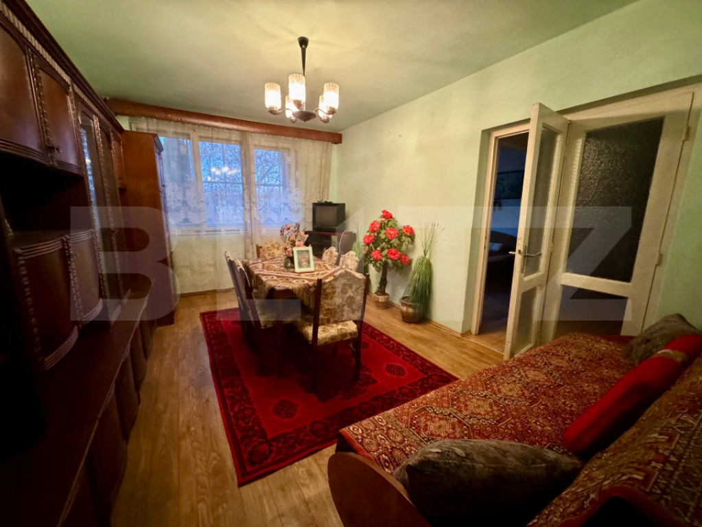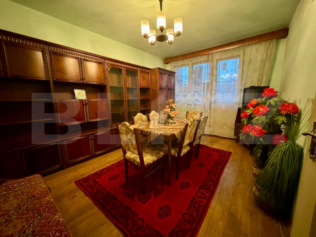 Blitz vă propune spre vânzare un apartament cu 3 camere, semidecomandate, situat în zona Rogerius, la etajul 3 din 4, într-un bloc cu structura din cărămidă, cu acoperiș. Locuința are o suprafață utilă de 64 mp utili și beneficiază de compartimentare practică, cu camere spațioase, bucătărie separată, baie cu geam pentru aerisire naturală și cămară cu geam. Apartamentul este orientat est–vest, cu geamuri spre curtea interioară, oferind liniște și lumină naturală pe tot parcursul zilei. Se vinde semi-mobilat și este imediat ocupabil. Dispune de geamuri termopan parțial, instalații sanitare schimbate, contorizare individuală cu citire radio și boxă generoasă la subsol. Zona Rogerius este una dintre cele mai apreciate zone ale orașului, cu acces rapid la piața, magazine, scoli, statii de transport public, bănci și multiple spații verzi. Ideal pentru familie sau investiție. Hai cu mine la vizionare! Cod ofertă / ID BLITZ: P164908 Id intern: P164908