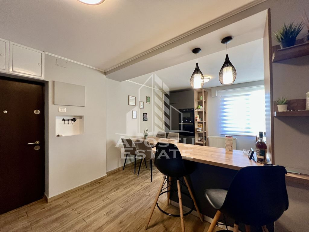 APOSTU ESTATE va propune spre vanzare un apartament renovat complet, situat in zona Tipografilor. Apartamentul este amplasat la etajul 5 intr-un imobil cu 10 etaje si lift. Proprietatea a fost complet renovata, inclusiv instalatiile. Confortul termic se realizeaza prin intermediul retelei de termoficare a orasului si a aparatului de aer conditionat. Beneficiaza de o boxa pentru depozitare, inscrisa in CF. Cu o suprafata de 74mp (inclusiv cele 2 balcoane inchise in geamuri termopan), este compartimentat astfel: - hol acces cu bucatarie spatioasa - living cu acces catre balconul inchis - hol tranzit - 2 dormitoare decomandate (unul cu balcon inchis) - baie cu cada Apartamentul se vinde complet mobilat si utilat, cum se vede in imagini. Va asteptam cu drag la o vizionare!