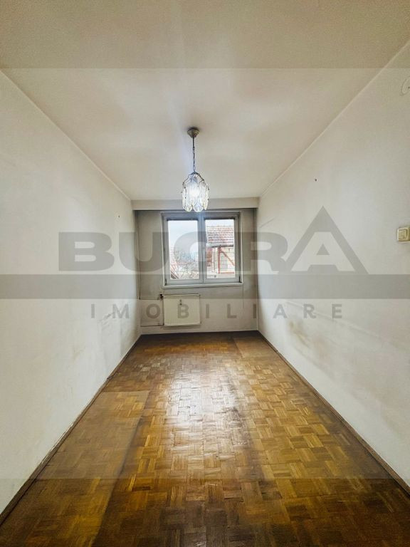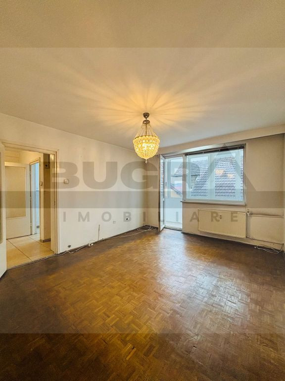 Bugra Imobiliare vă propune spre vânzare un apartament cu 3 camere situat în Cluj-Napoca, cartierul Grigorescu, in zona strazii Alexandru Vlahuță, poziționat excelent. Locuința este amplasată la etajul 2, are orientare vestică și dispune de o suprafață utilă de 62 mp, la care se adaugă un balcon închis de 5,5 mp. Compartimentarea este practică: 3 camere semidecomandate ( 2 dormitoare + living ), bucătărie, cămară de alimente, baie cu geam, antreu, sas și balcon. Apartamentul are geamuri termopan, iar imobilul este izolat și reabilitat termic. Proprietatea se vinde nemobilată și necesită renovare — un avantaj important pentru viitorul proprietar care dorește să o amenajeze complet după propriul stil și standarde. Zona este una dintre cele mai apreciate din oraș, cu acces rapid către puncte de interes precum Piata 14 Iulie, Cluj Arena, BT Arena, Parcul Babeș, două bazine olimpice, Parcul Rozelor, Promenada Someșului, Restaurant Desaga și Regina Maria, precum și stații de transport în comun, creșă și grădiniță în imediata apropiere. Ideal atât pentru locuință personală, cât și pentru investiție.