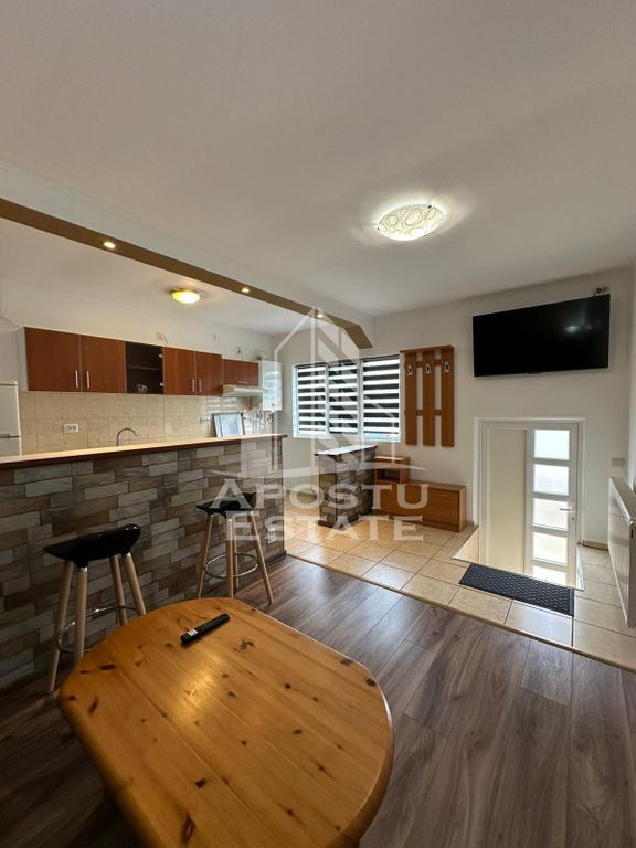 APOSTU ESTATE vă propune spre închiriere un apartament spațios și elegant, cu 3 camere, situat într-o zonă liniștită și bine conectată din Giroc, ideal pentru familii sau persoane care doresc un spațiu generos și confortabil. Suprafață utilă: 55 mp Compartimentare eficientă: Hol de acces generos Bucătărie complet mobilată și utilată, cu loc de luat masa Living luminos și spațios Dormitor matrimonial mobilat Cameră secundară mica Baie principală cu cadă și geam pentru ventilație naturală Confort și facilități: Centrală termică proprie pe gaz Aer condiționat Apartamentul este complet mobilat și utilat Nu se platesc cheltuieli de bloc deoarece apartamentul este la casa si totodata gunoiul , internetul si cablul este gratuit Localizare: Zona Giroc – liniște, acces facil spre oraș, în apropiere de magazine, școli și mijloace de transport în comun. Ideal pentru: Familii Cupluri Profesioniști care lucrează remote sau au nevoie de birou acasă Preț chirie: 450 E Programează o vizionare! CP2765711