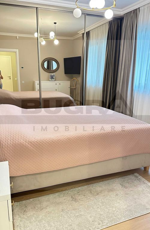 Bugra Imobiliare vă propune spre vânzare un apartament modern cu 3 camere, grădină proprie și loc de parcare la demisol, situat la parter înalt al unui imobil nou, finalizat în anul 2022, amplasat într-un complex rezidențial retras din cartierul Bună Ziua. Imobilul are regim de înălțime D+P+3 și face parte dintr-un ansamblu atent amenajat, care oferă locatarilor spații de joacă pentru copii, zone de relaxare, alei de promenadă și spații verzi, beneficiind totodată de supraveghere video, iluminat public și acces destinat exclusiv riveranilor. Apartamentul dispune de o suprafață utilă de 75 mp, fiind eficient compartimentat astfel: hol de acces living luminos bucătărie închisă 2 dormitoare 2 băi Orientarea sudică, împreună cu terasa acoperită și grădina proprie frumos amenajată, oferă un nivel ridicat de confort și intimitate, atât la interior, cât și la exterior. Proprietatea beneficiază de finisaje premium, este complet mobilată și utilată, incluzând electrocasnice de calitate superioară. Apartamentul este dotat cu: încălzire în pardoseală, automatizată și controlabilă individual pe fiecare cameră sistem de alarmă supraveghere video exterioară sistem de irigații automatizat pentru grădină La cerere, se poate achiziționa un al doilea loc de parcare. Această proprietate este ideală pentru cei care își doresc liniște, confort și un stil de viață modern, într-o zonă premium a orașului.