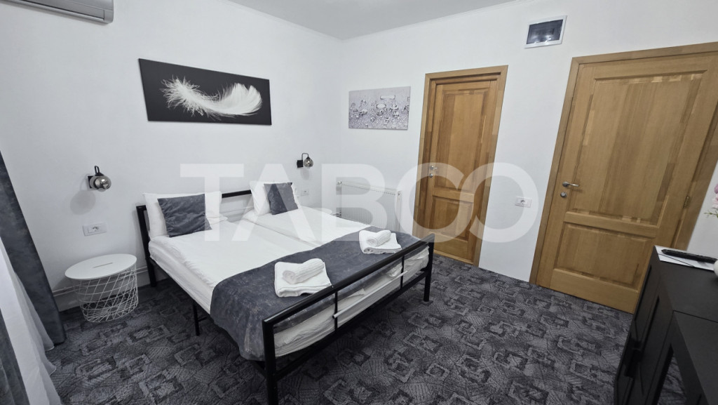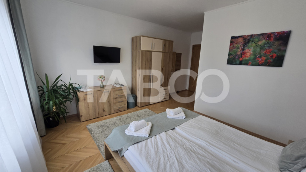 Apartament 3 camere de inchiriat, decomandat, 125 mp, zona Calea Poplacii, Sibiu. Avantaje majore ale acestui apartament: • Curte • Locatie ferita de aglomeratie TABOO Imobiliare propune un apartament de inchiriat cu 3 camere, decomandat, situat in localitatea Sibiu, zona Calea Poplacii, aflat la etajul 1 intr -un imobil tip casa/vila cu regim de inaltime pe Parter + 1 Etaje; anul constructiei 1970, structura caramida. Suprafata utila de 125 mp + balcon de 3 mp, terasa de 5 mp si gradina de 100 mp Apartamentul este structurat astfel: • Hol; • Bucatarie; • Dormitor cu baie si terasa; • Dormitor cu baie si balcon; • Dormitor cu baie; Finisajele interioare sunt moderne: • Usa intrare: lemn; • Usi interioare: lemn; • Tamplarie ferestre: pvc, termopan; • Pereti: vopsea lavabila, faianta; • Podele: parchet, gresie. Utilitati si dotari: • Bucatarie: mobilata, utilata; • Mobilat: complet; • Utilitati: curent electric, apa, canalizare, gaz, catv, telefon, acces internet, fibra optica; • Izolatii: exterior; • Contorizare: apometre, contor gaz, contor curent electric, contorizare separata; • Caracteristici casa/vila: acoperis, curte comuna. Apartamentul se inchiriaza mobilat si utilat cu: plita electrica, masina de spalat rufe, frigider, cuptor cu microunde, espressor de cafea. Incalzirea se realizeaza prin centrala proprie, calorifere si dispune de sistem de climatizare in fiecare dormitor (A.C.) . Pentru a se inchiria acest apartament se achita proprietarului chiria + o luna garantie. Pret: 800€ Cod ofertă / ID: P25186 Sună-ne acum la 0369.822.820 și află detalii despre această proprietate de inchiriat din Sibiu, dar și despre alte proprietăți potrivite pentru tine. Informatii speciale: 1. Descarcă aplicația pe mobilul tau "TABOO Imobiliare" din Apple Store, Google Play sau Huawei AppGallery pentru a afla instantaneu noile proprietăți care intră pe piață. 2. Dacă ai o proprietate pe care vrei să o vinzi sau să o închiriezi, suntem aici pentru tine! Contactează-ne pentru o evaluare gratuită fără obligații și vei descoperi avantajele de a lucra cu o echipă dedicată și experimentată. 3. Dacă vrei sa incepi o cariera de agent imobiliar, suna la 0369.822.820 si programeaza o intalnire pentru a afla toate beneficiile si avantajele. Intră pe TABOO.ro și descoperă cele mai recente oferte, actualizate zilnic. Anunt actualizat in 5 decembrie 2025. Id intern: P25186