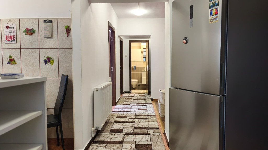 Va propunem spre inchiriere apartament 3 camere in Deva, zona Iuliu Maniu Detalii imobil: – etaj 8 in bloc de 10 nivele – suprafata 70 mp – decomandat – bucatarie open space cu holul – balcon inchis – usa metalica – usi interioare schimbate – ferestre termopan cu tamplarie PVC – parchet clasic bine intretinut, gresie, faianta – centrala termica – renovat integral – mobilat, utilat la cheie – ocupabil imediat Pret: 600 euro/luna + 1 luna garantie . Comision agentie: 50% din prima chirie, pentru chirias. Tel: 0770 362 979 (Rebecca) sau 0745 398 949 (Marcela) Ai vreo întrebare despre această proprietate? Nu ezita să ne contactezi telefonic sau: Adresa agentiei New Imob Deva: Pe centrul pietonal (prin gangul aflat intre cafeneaua Cotton si La Librarie, vis a vis de Fried Chiken- primul birou in partea stanga la parter) Site: newimob.ro