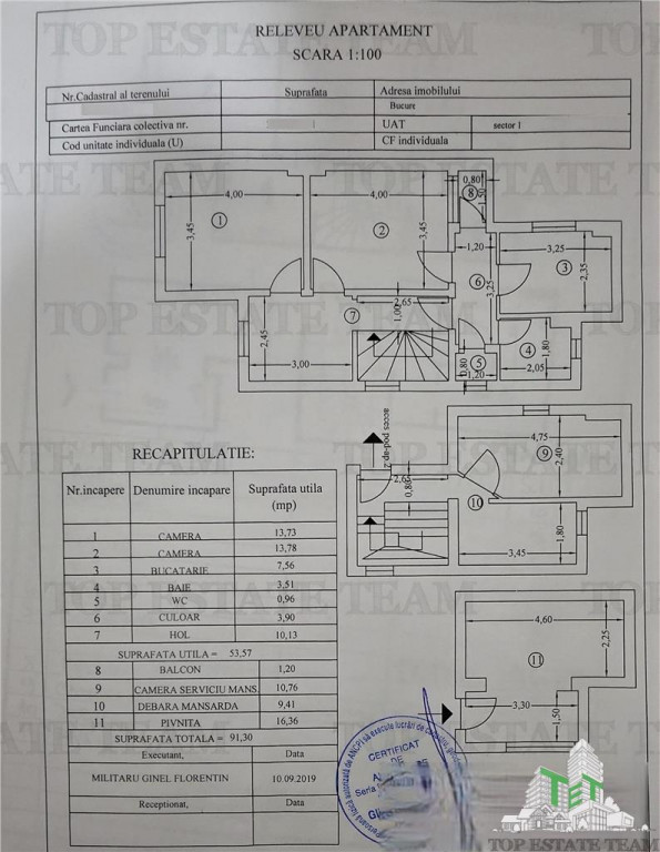 Excelenta prin experienta! Apartament 3 camere in vila zona Titulescu Alexandru Ioan Cuza. Va prezentam spre vanzare un apartament de 3 camere situat intr-un imobil de tip vila intr-o zona centrala si foarte bine conectata. Proprietatea beneficiaza de acces rapid catre supermarketuri banci mijloace de transport in comun iar statia de metrou Basarab se afla la aproximativ 8 minute de mers pietonal. Apartamentul este amplasat la etajul 1 plus mansarda intr-un imobil P 1 M situat in curte comuna avand acces separat exclusiv pentru acest apartament. La proprietate se adauga si o pivnita. Suprafata utila este de 75 mp iar suprafata totala este de 91 mp. Apartamentul este compus din 3 camere 2 dormitoare bucatarie 2 bai si 1 balcon. Finisajele includ parchet gresie faianta si pereti cu lavabil fiind oferit nemobilat astfel incat viitorii proprietari il pot amenaja conform propriilor viziuni. Datorita amplasarii si configuratiei apartamentul este potrivit atat pentru locuinta cat si pentru activitati de tip office; Pretul de vanzare este de 250000 euro fara TVA. ID intern TET0022046.