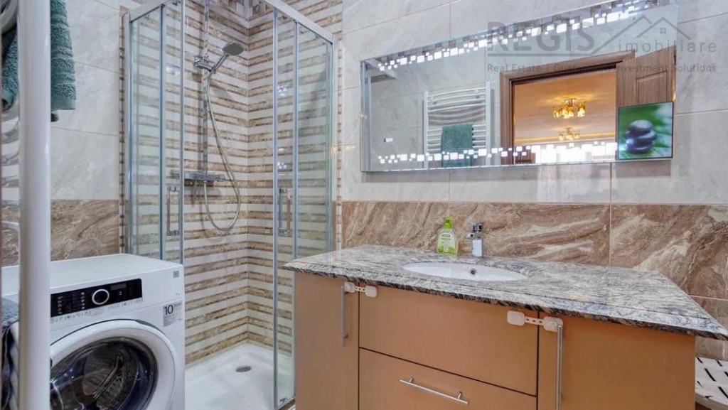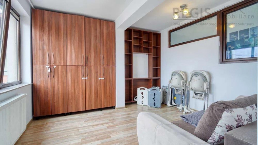 ID intern: 6165. REGIS Imobiliare va prezinta spre vanzare un apartament spatios de 3 camere, situat in complexul rezidential Isaran, una dintre cele mai cautate zone din Brasov, la doar 5 minute de mers pe jos de Mall Coresi. Detalii proprietate: Suprafata utila: 97 mp Balcon generos: 12 mp, cu vedere panoramica Etaj: 10 / 10 Compartimentare: Living cu bucatarie open-space 2 dormitoare 2 bai Balcon mare, accesibil din living Dotari si beneficii: Se vinde complet mobilat si utilat, gata de mutare Sistem de climatizare nou, instalat recent (valoare 3.500 EUR) Izolatie foarte buna, cu costuri reduse de intretinere pe timp de iarna Loc de parcare suprateran cu bariera ndash; inclus in pret Facilitati ale complexului: Locuri de joaca pentru copii Terenuri de fotbal Spatii verzi, atmosfera linistita si sigura Statia de autobuz se afla chiar langa complex Locatie: Complex Isaran, Brasov Comision agentie: 2% TVA
