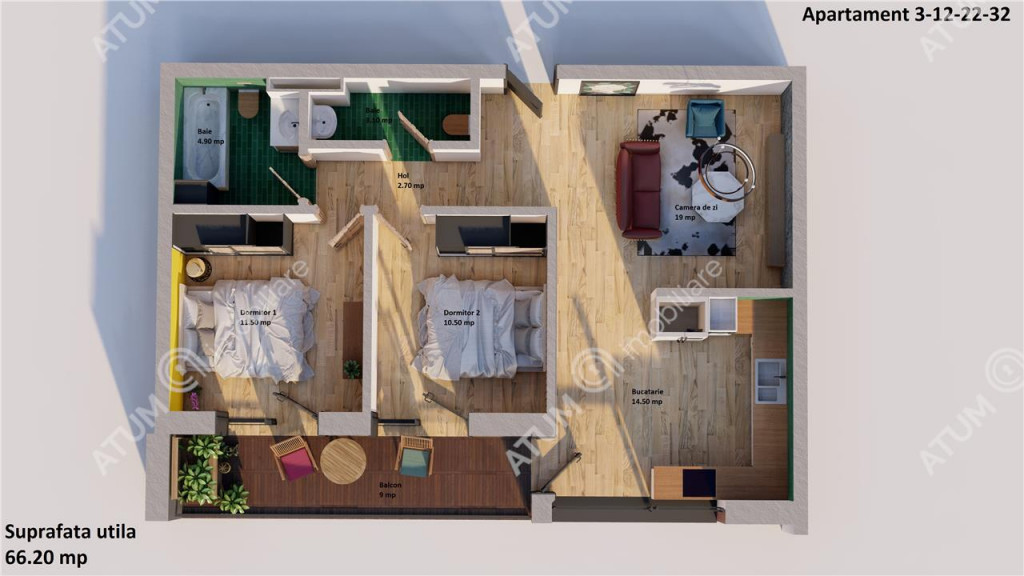Suprafața utilă 66 m²