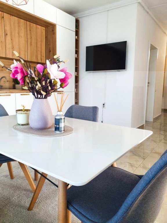 BLITZ propune spre vanzare un apartament compus din 3 camere, semidecomandat, din zona strazii Oasului. Apartamentul se afla intr-un imobil nou construit in anul 2019, ferit de aglomeratia de la strada principala dar in acelasi timp avand acces la toate facilitatile orasului. In proximitate se gasesc magazine, complexul Auchan Iris, statii de autobuz si tramvai. Apartamentul este situat la etajul 3 intr-un imobil cu 10 etaje are o suprafata utila de 54 mp plus o terasa de 26 mp. Apartamentul este compus din: hol la intrare, living si bucatarie open space, dormitor, un birou cu dressing si o baie. Iesirea pe terasa de face atat din living cat si din cele doua dormitoare. Apartamentul se vinde complet mobilat si utilat, asa cum se observa in pozele de prezentare. Mobilierul este in intregime realizat la comanda, iar finisajele sunt de inalta calitate. Optional se poate achizitiona si un loc de parcare in subteranul imobilului. Pentru mai multe informatii sau pentru a programa o vizionare, nu ezitati sa ne contactati! Cod ofertă / ID BLITZ: P1286 Id intern: P1286