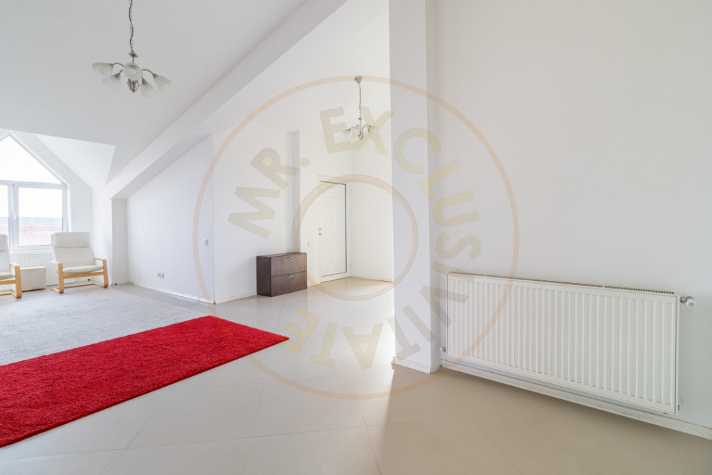 Apartament spatios, situat la mansarda inalta a unui bloc cu 3 etaje, intr-o zona linistita din Voluntari. Mansarda este complet locuibila, cu tavane inalte si fara zone joase sau spatii pierdute. Conform cadastrului: Suprafata utila: 108,65 mp Suprafata totala: 122,05 mp Balcon: 7,85 mp Terasa: 6,55 mp Compartimentarea este eficienta si aerisita: Living: 28,29 mp Living cu hol: 33,55 mp, ideal ca zona de zi extinsa sau birou Dormitor: 22,35 mp Bucatarie separata: 11,78 mp Doua bai: 6,17 mp si 6,51 mp Apartamentul este luminos, cu ferestre mari si deschideri generoase. Beneficiaza de aer conditionat si incalzire prin calorifere. Finisajele sunt curate si functionale, permitand personalizare usoara. Balconul si terasa ofera spatiu exterior real, cu vedere deschisa, un avantaj rar pentru acest tip de proprietate. Apartamentul se poate vinde mobilat sau nemobilat, in functie de preferinta cumparatorului. Nu dispune de loc de parcare. Anul constructiei: 2007 Proprietatea este potrivita atat pentru locuire, cat si pentru investitie, datorita suprafetei generoase, compartimentarii bine gandite si accesului rapid catre Bucuresti si zona de nord. Id intern: P7936