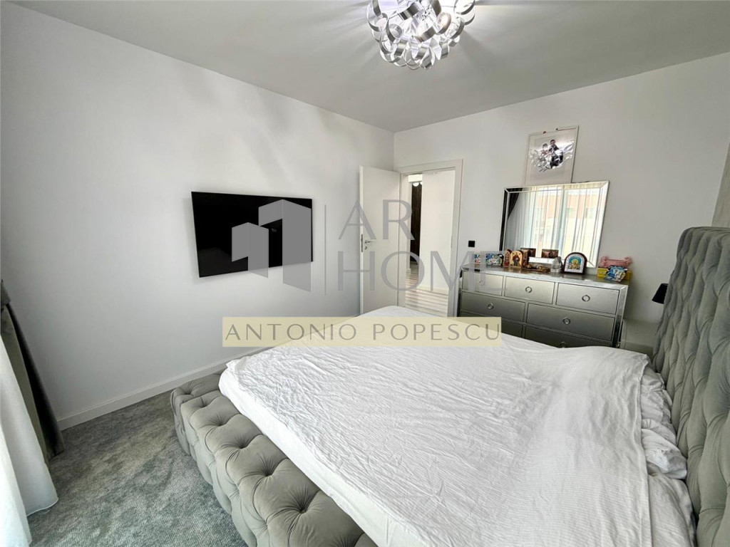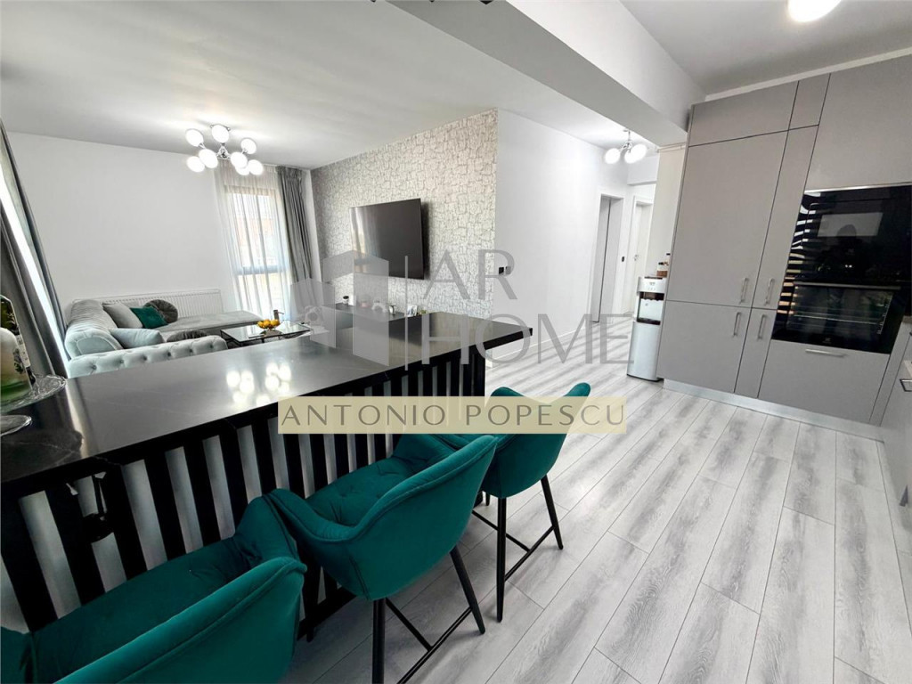 Vanzare apartament 3 camere, decomandat, in Ploiesti, zona Albert, situat la etajul 4 intr- un bloc cu regimul de inaltime P 4. Imobilul face parte din ansamblul rezidential MRS Village format din 6 blocuri nou construite si case de tip duplex beneficiind de cartier imprejmuit cu gard, spatii verzi generoase, loc de joaca pentru copii, locuri de parcare pentru vizitotori, spatii comerciale etc. Este construit in anul 2022 cu fundatie de beton armat, structura pe cadre de beton, peretii din caramida Porotherm inclusiv cei de compartimentare interioara, tencuit la interior si izolat termic la exterior cu polistiren de 10 cm EPS 80. Apartamentul are o suprafata utila de 76,4 mp plus balcon in suprafata utila de 7,10 mp. Dotari: loc de parcare propriu, interfon, lift Schindler, usa intrare metalica, usi interioare celulare Porta Doors, tamplarie PVC Salamander cu geam tripan, centrala termica proprie Vaillant, calorifere din otel, gresie, faianta, parchet laminat, plinta PVC, mocheta cu underlay, vopsea lavabila etc. Vecinatati: gradinita, after school, sala de fitness, Meraki market etc. Se vinde mobilat si utilat la pretul de 154900 euro.