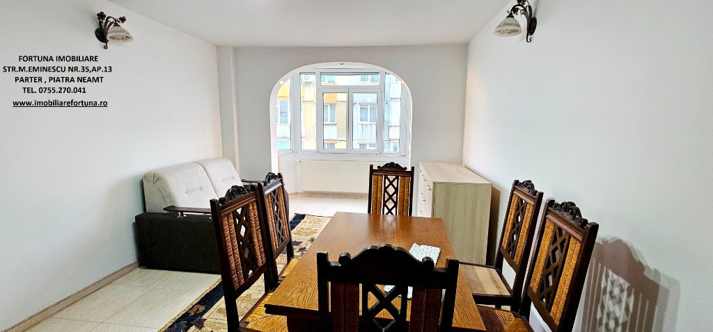 Pentru o prezentare detaliată și vizionare, vă invităm la sediul nostru, Fortuna Imobiliare, str. M. Eminescu, nr. 35, ap. 13, parter, lângă fostul Tribunal, tel. contact 0755.270.041.
