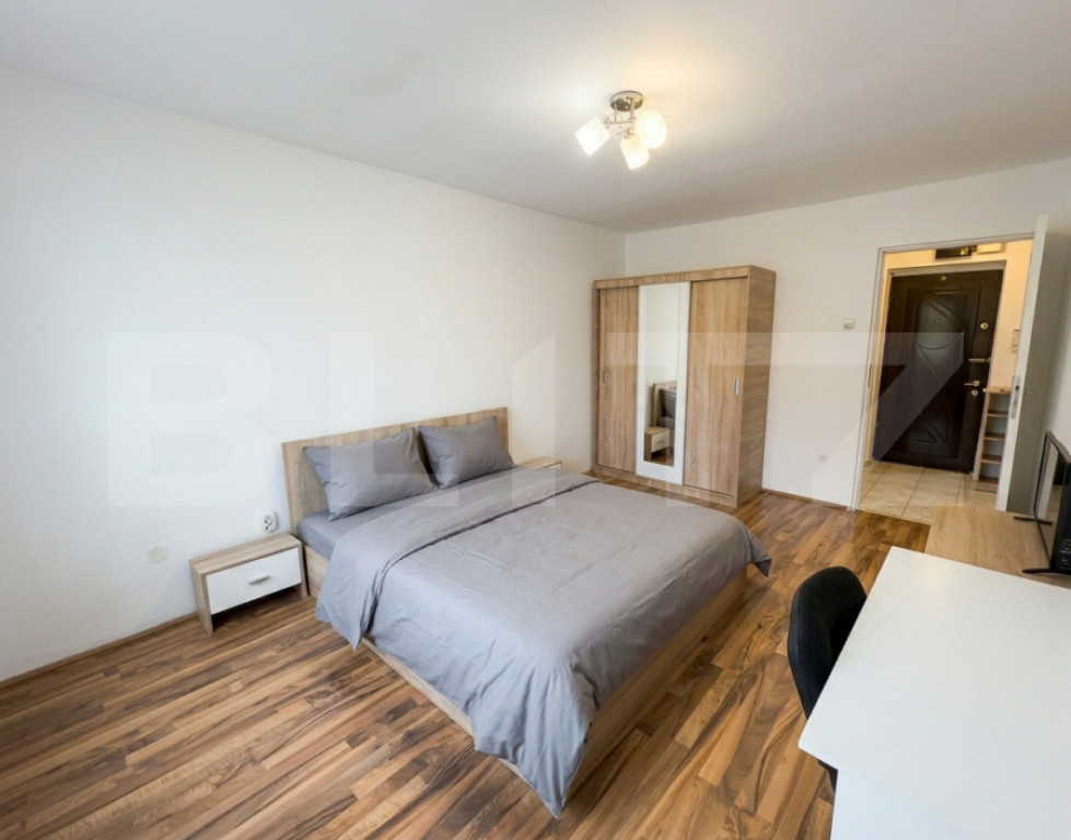 Blitz ofera spre inchiriere un apartament cu 3 camere, situat in cartierul Manastur, zona Primaverii — una dintre cele mai cautate si bine conectate zone din Cluj-Napoca, ideala pentru studenti sau tineri profesionisti! Detalii apartament – Suprafata utila: 54 mp – Compartimentare decomandata – Etaj: 1 din 4 – Imobil bine intretinut, retras de la artera principala Apartamentul se remarca prin pozitionarea excelenta si compartimentarea practica, oferind liniste si confort, fiind inconjurat de arbori si spatii verzi. Compartimentare & dotari – 3 camere separate, amenajate cu pat matrimonial, birou, TV si spatii de depozitare — ideal pentru studenti – Bucatarie mobilata si utilata: aragaz, frigider, centrala termica proprie – Baie dotata cu cada – Hol cu acces facil catre toate incaperile Confort & avantaje – Centrala termica proprie – Zona linistita, ferita de trafic intens – Spatii verzi in imediata apropiere Localizare excelenta Situat in zona Primaverii, in inima cartierului Manastur, apartamentul beneficiaza de acces rapid catre magazine, cafenele, statii de autobuz cu legaturi directe catre toate punctele importante din Cluj-Napoca. Programeaza o vizionare si descopera o oportunitate excelenta pentru locuire sau investitie, intr-o zona extrem de cautata! Cod ofertă / ID BLITZ: P169558 Id intern: P169558