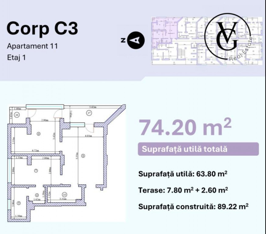 • Utilă: 63.8 m²;