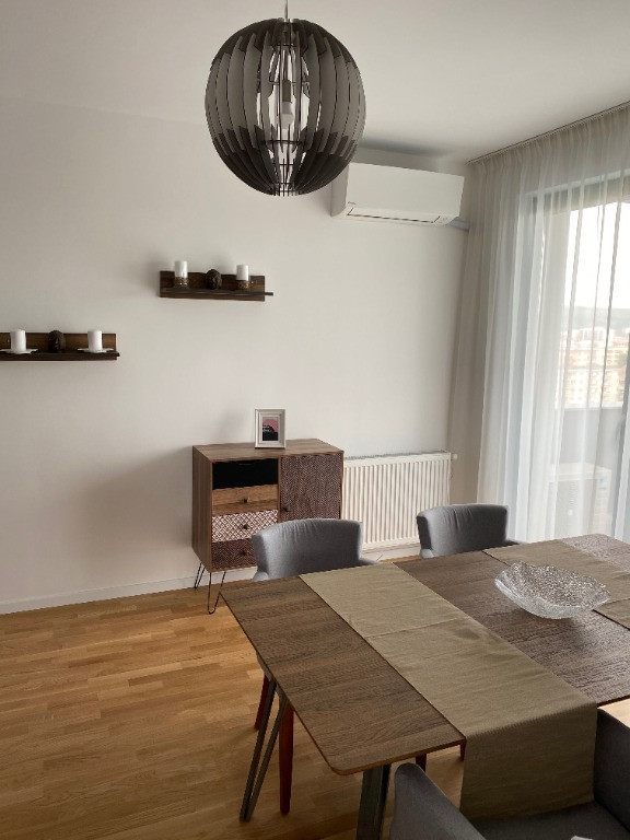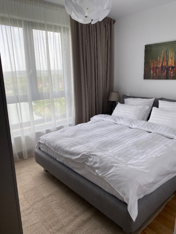 Apartament 3 camere decomandate de închiriat – Park Lake | Vedere directă la lac | Orientare estică Vă propunem spre închiriere un apartament cu 3 camere decomandate, situat în prestigiosul complex rezidențial Park Lake , imobil finalizat în anul 2020, cu orientare estică și vedere panoramică către lac Apartamentul se remarcă prin finisaje premium, design modern și o compartimentare eficientă, fiind ideal atât pentru rezidență personală, cât și pentru chiriași corporate sau expatriați. Caracteristici generale: • Suprafață optim optimizată, cu spații bine delimitate • Living luminos cu acces către terasă • 2 Dormitoare matrimonial separat • Bucătărie complet mobilată și utilată • 2 Bai moderne cu obiecte sanitare de calitate superioară Dotări și echipamente: • Mobilier premium import Italia • Televizor Samsung • Electrocasnice încorporate Franke: plită electrică, cuptor electric, hotă, frigider • Cuptor cu microunde • Aparat de cafea • Aer condiționat Daikin • Centrală termică proprie Buderus • Mașină de spălat rufe • Lenjerie de pat și prosoape incluse Beneficii suplimentare: • Terasă spațioasă de 7 mp, ideală pentru relaxare • Loc de parcare inclus • Acces securizat, complex rezidențial modern • Proximitate față de parc, lac și centre comerciale ???? Preț chirie: 1100 euro + TVA