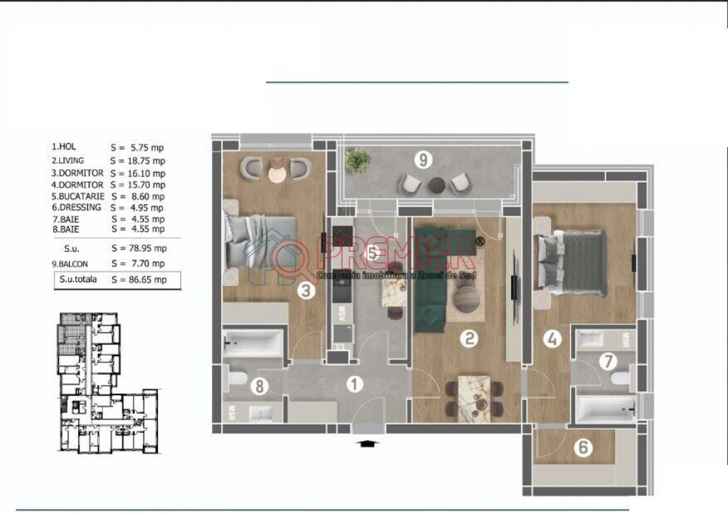 ???? Apartament 3 camere semidecomandat | Bloc nou | Etaj 1/6 Se oferă spre vânzare apartament cu 3 camere semidecomandat, situat la etajul 1 din 6, într-un complex rezidențial modern, bine organizat, cu facilități pentru întreaga familie. Detalii apartament: Suprafață utilă: 86,65 mp Compartimentare eficientă Centrală termică proprie Finisaje premium Se predă la cheie, cu toate utilitățile Avantaje: Bloc cu lifturi moderne și supraveghere video Spații verzi, locuri de joacă și zone de recreere Acces rapid la STB, parcuri, magazine și școli Posibilitate achiziție loc de parcare 0% comision Pozele cu titlul de prezentare din apartament predat anul curent de acelasi dezvoltator. ???? Preț: 139.000 € + TVA (avans minim 15%) ???? Contact pentru detalii și vizionare: Eduard – 0730 888 286 Detalii zona: - Statie STB in fata blocului - 10 minute pietonale Parcul Tudor Arghezi - 7 minute pietonale Kaufland - Lidl - 10 minute pietonale Grand Arena Mall Serviciul nou oferit de PREMIER Imobiliare! Solicita acum VIZIONARE ONLINE pentru aceasta proprietate! COMISION 0% Această proprietate se poate achiziționa prin orice tip de credit bancar. Departamentul nostru financiar Premier Credit Hub vă stă la dispoziție GRATUIT (comision 0%) pentru: - identificarea celei mai bune soluții de finanțare; - întocmirea dosarului bancar complet; - obținerea rapidă a creditului necesar achiziției. Beneficiați de un serviciu ALL IN ONE, cu acces direct la ofertele tuturor băncilor comerciale din România. Se acceptă inclusiv venituri din străinătate, astfel încât fiecare client să poată cumpăra în cele mai avantajoase condiții. Solicitați acum o simulare de credit direct din anunț sau cereți detalii consultantului Premier Imobiliare!