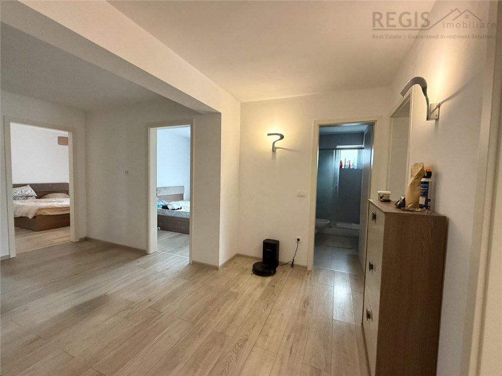 ID: 5878. REGIS Imobiliare va propune spre inchiriere un apartament cu 3 camere, decomandat, situat la parter, complet mobilat si utilat, cu 2 balcoane si 2 bai, parcare si boxa, in zona Coresi Kasper. Locuinta este ideala pentru cei care cauta un spatiu generos, modern, aflat intr-o cladire noua, cu acces rapid la magazine, transport public, restaurante si alte facilitati urbane din zona. Compartimentare: - Living spatios cu acces la balcon - Bucatarie inchisa, complet echipata: aragaz, cuptor, hota, frigider - 2 dormitoare luminoase, mobilate complet, unul cu acces balcon - 2 bai, una dotata cu masina de spalat rufe - hol generos cu dressing - 2 balcoane, cu acces din living si dintr-un dormitor - Spatii de depozitare bine organizate Facilitati: - Apartament situat la parter, ideal pentru familii sau persoane care prefera accesul facil - Complet mobilat si utilat modern - Cladire noua, cu acces securizat - Boxa si loc de parcare inclus Conditii de inchiriere: - Inchiriere pe termen lung (minim 12 luni) - Garantie: echivalentul unei chirii lunare - Disponibil din 13 octombrie Pentru mai multe detalii sau pentru a programa o vizionare, nu ezitati sa ne contactati. Comisionul agentiei este de 50% TVA din prima chirie Andreea, Consultant Imobiliar
