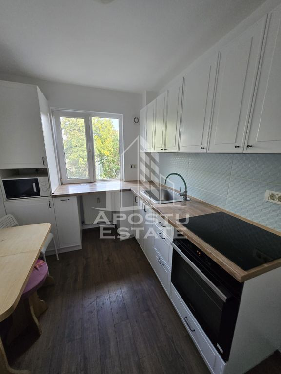 APOSTU ESTATE va propune spre onchiriere un apartament spatios si elegant, cu 3 camere, situat in zona Sagului , ideal persoane care doresc un spatiu generos si confortabil. Suprafata utila: 58 mp Compartimentare eficienta: semidecomandat Hol de acces generos Bucatarie mobilata si utilata, cu loc de luat masa Living luminos si spatios Dormitor matrimonial mobilat Dormitor secundar Baie principală cu cada si geam pentru ventilatie naturala Debara pentru depozitare Confort si facilitiati: Incalzire Colterm Aer conditionat Plită cu inductie Cuptor cu microunde Apartamentul este complet mobilat si utilat Localizare: Sagului – liniste, acces facil spre oras, in apropiere de magazine, scoli si mijloace de transport in comun. Ideal pentru: Cupluri Studenti Persoane cu caine Preț chirie: 410 € + garantie 410 € Programeaza o vizionare! ID intern: CP2771545