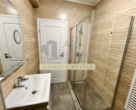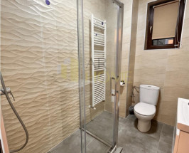 Dispune de urmatoarele finisaje si dotari: gresie, faianta, usi de calitate superioara, centrala termica, AC, usa intrare metalica, tamplarie PVC cu geam tripan, glafuri marmura interior/exterior, vopsea lavabila.