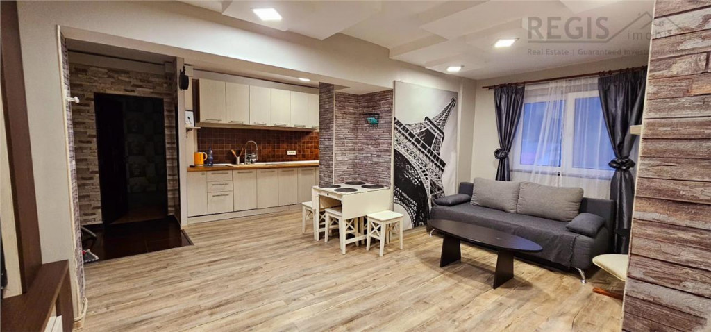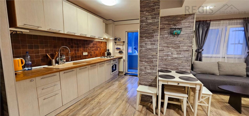 ID3988 Regis Imobiliare va propune spre inchiriere apartament cu trei camere cu o suprafata generoasa, situat in cel mai verde si aerisit cartier al Brasovului si anume in Racadau. Apartemtul este situat la etajul 7 intr-un bloc cu 8 nivele, cu orientare estica, fiind insorit in marea parte a zilei. Avand vederea spre curtea interioara a blocului, este ferit de zgomotul cotidian, oferind o priveliste spectaculoasa spre padure. Proprietatea are o suprafata utila de apropae 70 mp, impartiti in 2 dormitoare generoase, living open space cu bucataria, care are acces spre un balcon de 11 m si baie cu cada si aerisire naturala. Proprietatea este complet mobilata si utilata si beneficiaza de aer conditionat si loc de parcare. In imediata apropiere sunt situate numroase parcuri, spatii de recreere, Scoala generala nr. 25, Liceul de Arte Plastice, Gradinita Martinica si cateva crese de stat. Membrii patrupezi sunt bineveniti :-) Comisionul companiei este de 50% tva din prima chirie. Va asteptam la vizionare.