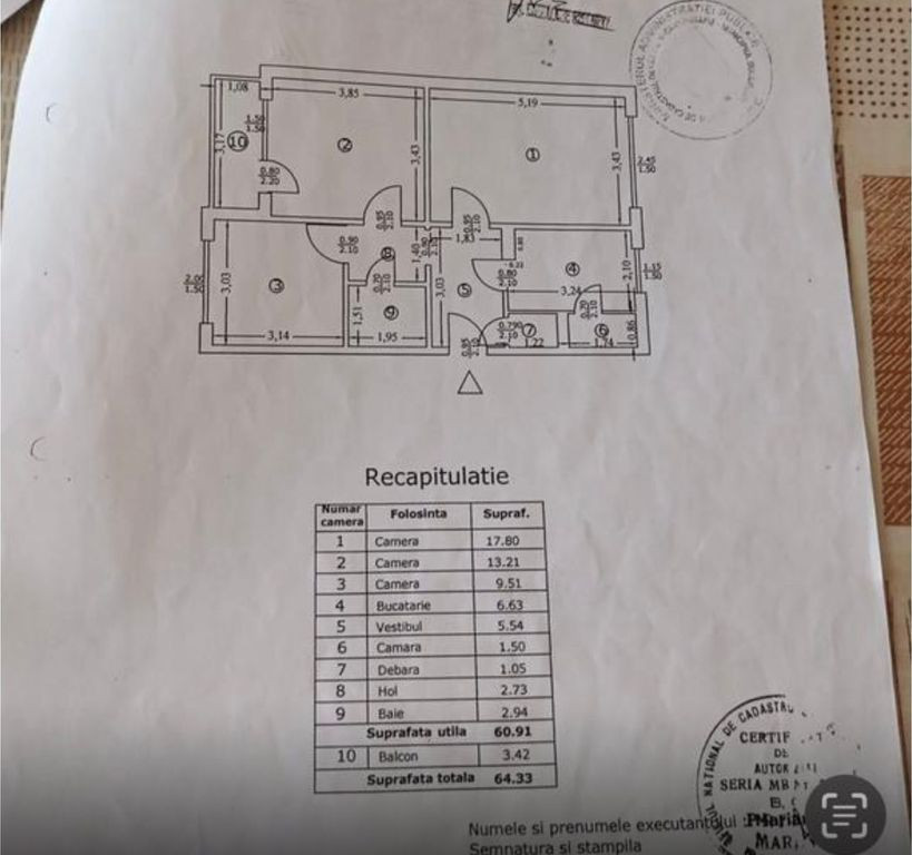 APARTAMENT 3 CAMERE RAHOVA ANTIAERIANA 61 MP