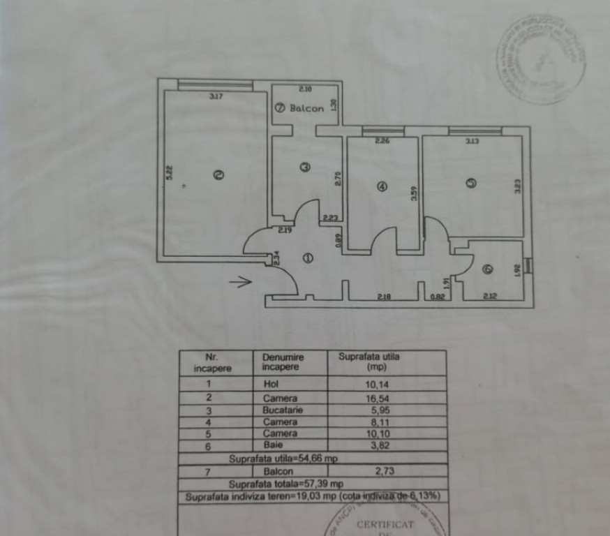Suprafața utilă 54 m²