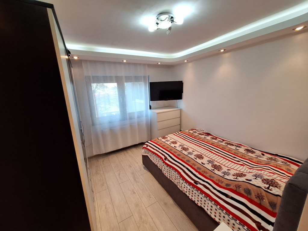 Apartament 3 camere Renovat in Totalitate, etaj 2/4. Dotat cu: - Centrala termica si aer conditionat. - Tamplarie interioara si exterioara schimbata , PVC termopan si rulouri exterioare. - Izolatie termica exterioara. Se vinde cu bucatarie complet mobilata si utilata cu plita, cuptor si hota. Restul apartamentului partial mobilat. Id intern: P262608