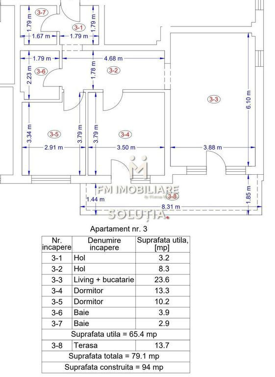 ???? FM Imobiliare vă propune spre vânzare un apartament modern cu 3 camere, situat în Baia Mare, zona străzii Salciei – o zonă liniștită și bine conectată, ideală pentru familii. ???? Localizare: Baia Mare – zona Salciei ???? Imobil: bloc nou (P+2), construit după 2021, izolat termic, amplasat pe o stradă asfaltată și accesibilă. ???? Detalii apartament: ???? Suprafață utilă: 66 mp ???? Suprafață totală: 80 mp (inclusiv terasa) ???? Etaj: Parter înalt Compartimentare practică: • living spațios cu bucătărie open-space • 2 dormitoare • 2 băi – una cu duș walk-in, cealaltă cu cadă • terasă de 14 mp • hol cu dressing generos ???? Orientare: S-E – apartament luminos pe tot parcursul zilei ???? Vedere: liberă, fără clădiri în față ⚙️ Dotări și finisaje: ✅ centrală proprie + încălzire în pardoseală ✅ costuri reduse de întreținere ✅ mobilier la comandă, apartament locuit doar aprox. 2 ani ✅ se vinde complet mobilat și utilat (cuptor, plită, hotă, frigider, mașină de spălat vase, mașină de spălat rufe) ✅ 2 locuri de parcare în fața blocului ???? Facilități în zonă: ???? grădiniță privată la câteva minute ???? magazin alimentar în apropiere ???? stație de autobuz pe strada Victoriei, la aproximativ 5-7 minute de mers pe jos ???? Preț: 124.000 € ???? Se percepe comision de intermediere. ???? Florina Mureșan – 0743 999 810 ???? fmimobiliare.ro ???? FM Imobiliare – SOLUȚIA ????