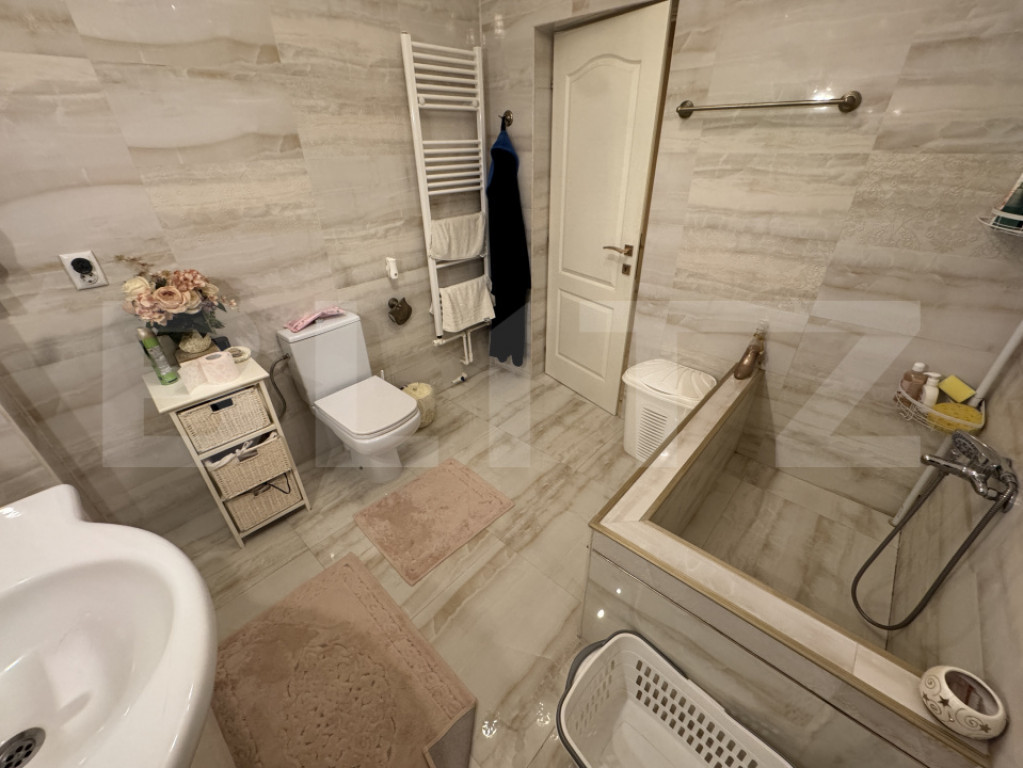 Blitz oferă spre vânzare un apartament deosebit, situat în zona rezidențială liniștită din Breazu, ideală pentru cei care caută confort, intimitate și un stil de viață relaxat. Proprietatea dispune de 69 mp utili și este completată de o terasă generoasă de 12 mp, perfectă pentru relaxare, mese în aer liber sau spațiu verde decorativ. Locuința impresionează prin finisaje elegante și o atmosferă caldă, fiind amenajată cu atenție la detalii. Livingul open-space cu bucătărie oferă un spațiu optim de socializare, iar dormitoarele sunt luminoase și confortabile, cu mobilier stil clasic modern. Baia principală este spațioasă, cu cadă incorporată și finisaje de calitate, iar toaleta de serviciu oferă un plus important de funcționalitate. Apartamentul este însoțit de un loc de parcare. Vă așteptăm cu drag la vizionare! Cod ofertă / ID BLITZ: P158614 Id intern: P158614