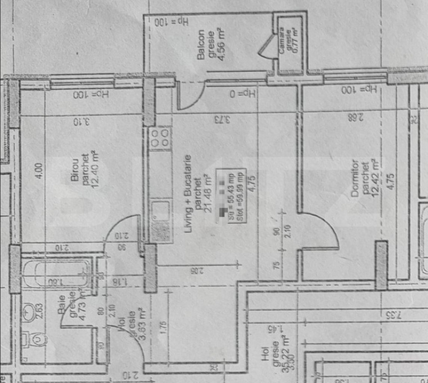 Suprafața utilă 55 m²