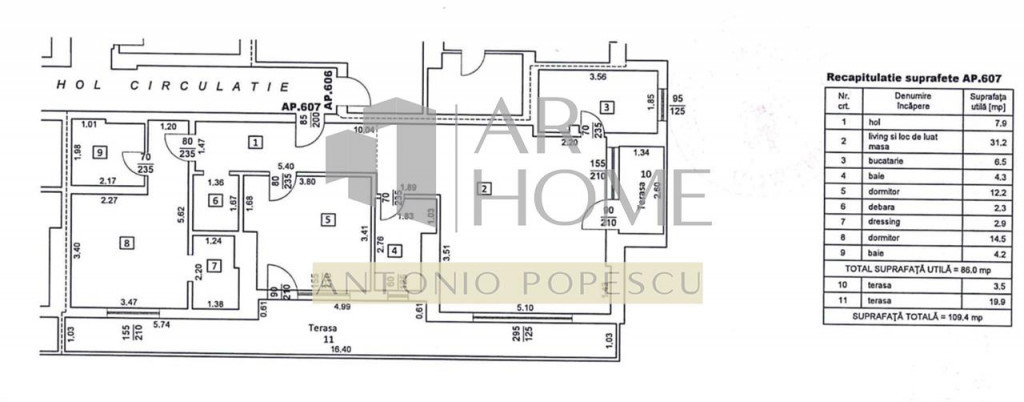 Vanzare apartament 3 camere, in Ploiesti, zona Gh. Doja, situat la etajul 6 intr- un bloc cu regimul de ianltime -2 P 10. Apartamentul face parte din blocul Bucegi Residence, avand ca vecinatati Parcul Mihai Viteazul, Palatul de Justitie, mijloace de transport in comun etc. Este construit in anul 2025 cu fundatie de beton armat, structura pe cadre de beton, peretii din Y-tong, compartimentarea interioara din Y-tong Xella, tencuit la interior si izolat la exterior cu polistiren 10 cm EPS 100 si partial fatada ventilata cu placaj din fibrociment. Apartamentul are o suprafata utila de 86 mp, plus 2 terase in suprafata de 23,4 mp. Dotari: video interfon, receptie complet amenajata, 3 lifturi, 5 pompe de caldura in cascada cu panouri fotovoltaice, usa intrare din lemn stratificat, usi interioare Filomuro din lemn stratificat, tamplarie PVC Salamander Bluevolution 92 cu geam tripan, incalzire in pardoseala prin pompe de caldura, aparat aer conditionat in fiecare camera tip pompa de caldura, parchet din lemn stratificat, plinta din PVC, ceramica Cristacer (import Spania)etc. Pret: 235600 euro TVA.