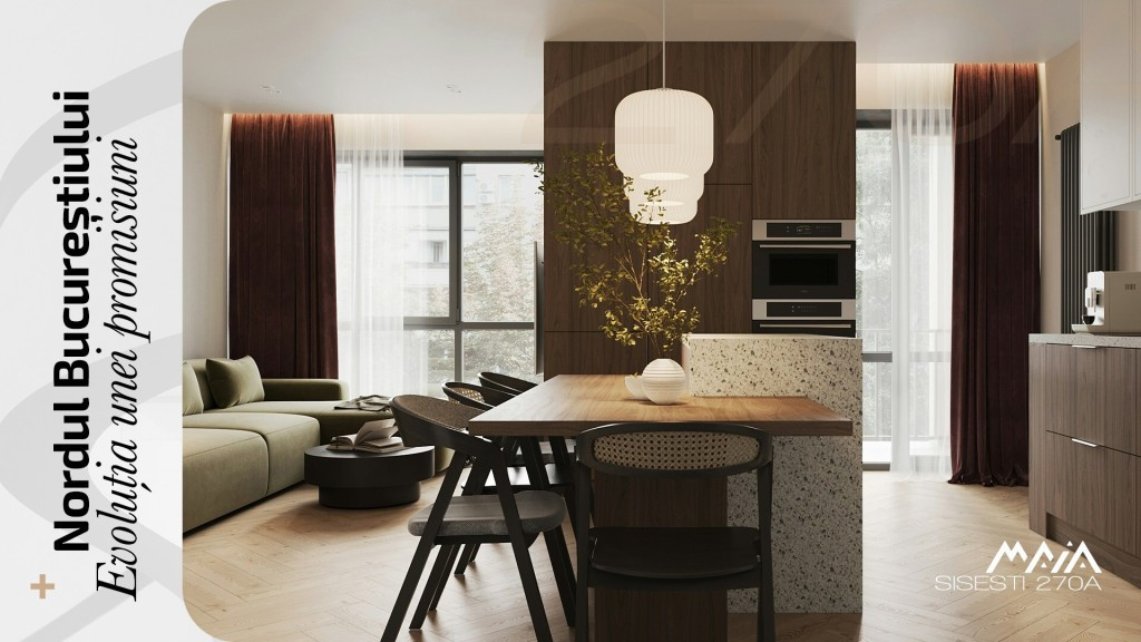 Preturile afisate sunt promotionale, valabile pana la data de 14 Decembrie 2025 pentru un avans de 50% si diferenta in transe pana la predarea apartamentului. Acestea sunt fara TVA si cu predare la stadiul semifinisat | Costul finisajelor este de 150 EUR fara TVA pe mp construit. Avem plăcerea să vă prezentăm oportunitatea de a achiziționa un apartament în proiectul rezidențial Maia Sisesti, faza a 2-a, situat pe Soseaua Gheorghe Ionescu Sisesti, la doar 350 de metri de Stația de metrou Straulesti. În cadrul ansamblului rezidențial Maia Sisesti, vă oferim un mix variat de apartamente cu 1, 2, 3 și 4 camere, fiecare cu avantajele lor specifice. Astfel, putem răspunde nevoilor și preferințelor tuturor clienților noștri. Indiferent dacă căutați un spațiu confortabil pentru un singur locuitor sau o locuință mai generoasă pentru o familie, veți găsi aici soluția ideală pentru dumneavoastră. Fiecare tip de apartament este proiectat cu atenție la detalii și finisaje de calitate superioară, oferindu-vă confort și bunăstare în noua voastră casă. Dotari ansamblu: - Ansamblul rezidențial va beneficia de ascensoare Schindler în fiecare corp de clădire, pentru acces facil. - Spațiile verzi amenajate vor oferi un mediu plăcut și relaxant în jurul blocurilor. - Casa scării și spațiile comune vor fi finisate modern, oferind un aspect primitor și estetic plăcut. Finisaje fixe: - Finisajele interioare vor asigura confort termic și acustic, permițându-vă să vă bucurați de intimitate și liniște. - Centrala termică și instalație termică pentru confort termic și apă caldă. - Ușa de intrare va fi din metal, imbracată în MDF, asigurând siguranță și izolare termică. - Tamplaria PVC cu geam termopan va asigura izolare termică și fonică eficientă. - Obiecte sanitare de calitate superioară pentru băi elegante și funcționale. - Gletul și șapele aplicate vor pregăti apartamentul pentru finisaje suplimentare. - Conexiunea pentru telefonie, internet și cablu TV va asigura conectivitatea dorită. - Instalația electrică. Finisaje la alegere (diverse modele): Pentru a vă personaliza apartamentul după preferințele dumneavoastră, puteți opta pentru finisaje opționale, cum ar fi: - Parchet laminat din aproximativ 10 modele disponibile. - Gresie și faianță în 3 variante, pentru un aspect modern și rafinat. - Uși interioare, cu diverse modele și culori, pentru a completa designul interior. Bransamente: Blocurile vor fi bransate la energie electrică, gaze naturale, apă și canalizare, oferind toate utilitățile necesare pentru a satisface nevoile rezidenților. De asemenea, locatarii vor avea acces la servicii de cablu, internet și telefonie, asigurând conectivitate și comunicare fără întreruperi. Parcari: Ansamblul beneficiază de facilități de parcare moderne. Acestea se regasesc la nivelul subsolurilor si demisolurilor celor doua corpuri si sunt contra cost. Preturile si diponibilitatile pot fi accesate oricand pe site-ul proiectului (maiasisesti*ro). Avantaje ale locației: - Acces facil la stația de metrou Straulesti, la doar 350 de metri distanță. - În apropiere se găsesc numeroase școli, grădinițe și unități de învățământ, precum și facilități recreative și de divertisment, cum ar fi Parcul Dendrologic Chitila și Palatul Mogoșoaia. - Enayati Medical City si Spitalul Regina Maria Băneasa asigură servicii de sănătate de calitate. - Diverse opțiuni de shopping în apropiere, inclusiv Băneasa Shopping City și Colosseum Mall. Transport - Statia de metrou Straulesti (350 m); - Statia de autobuz "Bucuresti Targoviste" [205]; - Statia de autobuz "2 Cocosi" [204, 304, 436]; - Aeroportul Aurel Vlaicu; Scoli si gradinite - Scoala/Gradinita Aletheea; - Scoala/Gradinita internationala Matei; - Scoala gimnaziala, Nr. 13; - Scoala gimnaziala, Nr. 6; - Scoala gimnaziala, Nr. 1; Recreere & Entertainment - Parcul Dendrologic Chitila; - Parcul Mogoşoaia; - Palatul Mogoşoaia; - Parcul Bazilescu; - Parcul Regele Mihai I al României. Ingrijire si sanatate - Spitalul Regina Maria Băneasa; - Enayati Medical City; Shopping - Băneasa Shopping City; - Colosseum Mall; - Mega Image Shop & Go; - Kaufland Straulesti, etc. Nu ratați această oportunitate de a vă achiziționa un apartament nou într-o zonă în dezvoltare rapidă, cu acces facil la metrou și numeroase facilități în jur. Pentru mai multe informații și pentru a programa o vizionare, vă rugăm să ne contactați la numărul de telefon 0799008822 sau să vizitați site-ul proiectului pe maiasisesti*ro.