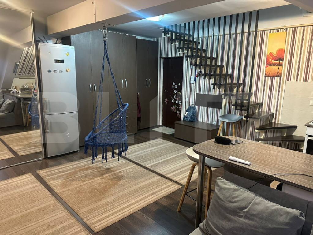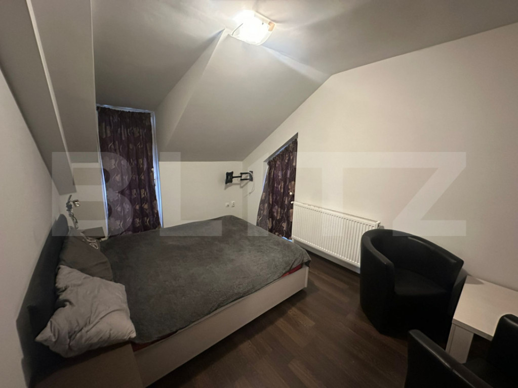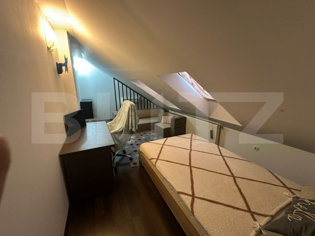Blitz ofera spre inchiriere apartament 3 camere apartament spațios și luminos, dispus pe două niveluri, cu o suprafață totală de 84 mp, ideal pentru o familie sau cuplu. Compartimentare: Etaj 1 (56 mp): Living generos cu bucătărie open-space -1 dormitor -1 baie -2 balcoane Etaj 2 (28 mp): -1 dormitor -1 baie Scară interioară Dotări și facilități: -Centrală pe gaz silențioasă -Aer condiționat -Mașină de spălat rufe cu uscător inclus -Mașină de spălat vase -Frigider cu congelator -Set Whirlpool: cuptor electric + plită pe gaz -Hotă și cuptor cu microunde -Espressor Bosch Tassimo -Aspirator -3 televizoare -Dressing și multiple spații de depozitare Alte avantaje: -Apartament călduros, foarte bine izolat -Luminos, cu orientare bună -Digi TV -Internet de mare viteză – 1000 Mbps, cu router Wi-Fi Locație excelentă – aproape de magazine, farmacii, sali și mijloace de transport în comun. Disponibil imediat! Cod ofertă / ID BLITZ: P161917 Id intern: P161917