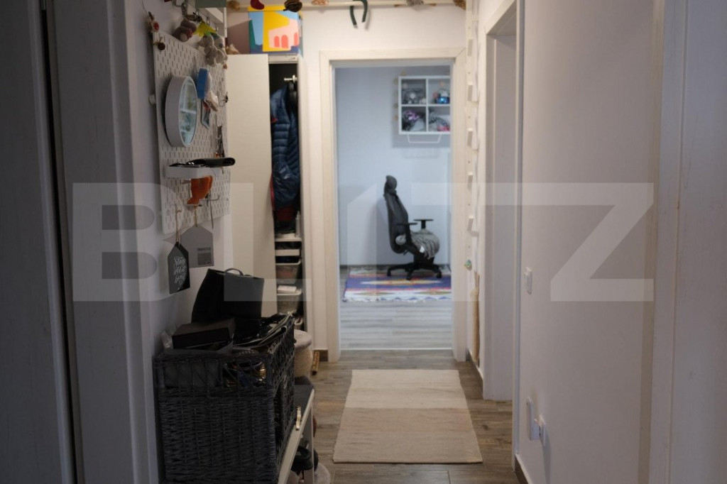 Blitz vă propune spre vânzare un apartament de 3 camere, situat în Ghimbav, la 5 minute de școală, grădiniță, multiple magazine alimentare, parcuri de joacă pentru copii, sală de fitness, cofetărie etc. Stația de autobuz se află la câteva minute distanță, iar cu mașina în 15 minute se ajunge în centrul Brașovului. Proprietatea dispune de o compartimentare decomandată, împărțirea camerelor fiind astfel: 1 dormitor matrimonial, 1 living spațios și 1 cameră transformată într-un birou pentru a beneficia de disponibilitatea de a lucra de acasă. Imobilul dispune de finisaje moderne, mobilier de calitate, culori alese cu grijă pentru o cromatică ce vă oferă intimitate și un sentiment de acasă. Suprafață utilă a apartamentului este de 75 metri pătrați astfel încât fiecare cameră dispune de eficiență și funcționalitate spațială. Cele doua băi ale apartamentului oferă confort în plus în diminețile aglomerate. Apartamentul dispune de orientare S-E astfel încât în majoritatea zilei este lumină naturala în imobil. Totodată, imobilul dispune de 2 balcoane cu vedere către munți. Pentru mai multe informații și pentru a programa o vizionare, te rugăm să ne contactezi. Cod ofertă / ID BLITZ: P93957 Id intern: P93957