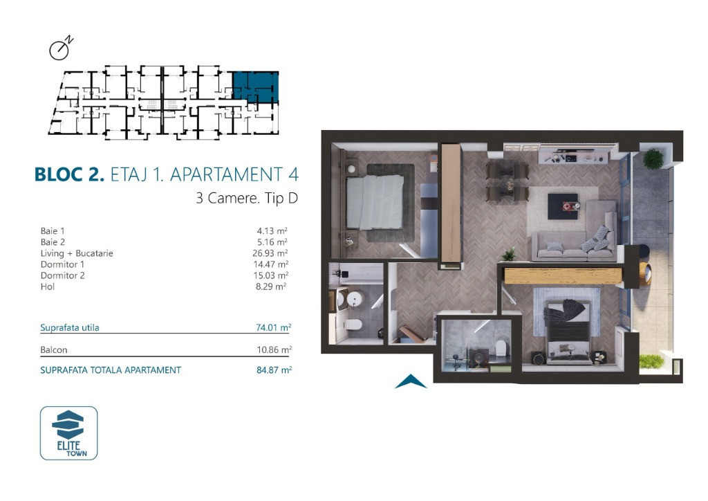 Prețul nu include TVA. Cu peste 3000 de apartamente livrate, în 25 de ani de experiență pe piața construcțiilor rezidențiale și 3 orașe diferite, Elite Grup reprezintă un nume cunoscut în topul dezvoltatorilor din România. Suntem amplasați în zona de Nord, cel mai dinamic punct al orașului Timișoara. Astfel, dacă ești o fire energetică și îți place să fii aproape de locurile cu adevărat importante, ai ajuns în cel mai potrivit loc! 1 minut până la Hypermarketul Metro 1 minut până la stația de autobuz (Expres 6, care merge până în zona Centrală a Timișoarei) 3 minute până la Intenso Fitness 4 minute până la Lidl și Profi 4 minute până la clădirea VOX - birouri IT, cafenele, restaurante 5 minute până la IKEA, Auchan, Selgros, Hornbach, Decathlon, Momax 6 minute până la Piața Verde 7 minute până la parcul Bucovina 8 minute până la Iulius Town - cea mai mare investiție comercială din afara Bucureștiului Întregul ansamblu beneficiază de dotări inteligent gândite, astfel încât tu să te simți cât mai relaxat. Subsolul găzduiește locuri de parcare și boxe spațioase, dotate cu o întreagă infrastructură de ventilație, supraveghere video și acces cu telecomandă. La parter dispunem de spații comerciale și alei pietonale pentru plimbări relaxante de seară, cu spații verzi și loc de joacă pentru copii. Fiecare apartament beneficiază de logie + balcon acoperit, astfel încât să te poți bucura de intimitate pe terasa ta, totodată având o suprafață generoasă și priveliști încântătoare! __________________________________________ Ce înțelegem prin "apartament inteligent"? Noi o vedem ca o soluție care îți aduce siguranță și confort! Aceasta începe cu videointerfonul care poate fi controlat de la distanță, continuă cu posibilitatea setării temperaturii dorite prin intermediul unei aplicații pe telefon, plus multe alte dotări și beneficii care fac o diferență mare pe termen lung! __________________________________________ Apartamentele se predau finisate la cheie PREMIUM, sau semifinisate. Varianta de predare semifinisată dispune de o reducere de preț, și posibilitatea personalizării totale a apartamentului dvs.! Suprafețele pentru apartamentele cu: 1 cameră încep de la 40 mpu, 2 camere de la 47 mpu, iar cele cu 3 camere de la 69mpu. Cele cu 3 camere dispun de variante în care una din băi este destinată exclusiv dormitorului matrimonial! Confortul termic este asigurat de încălzirea în pardoseală și de aparatul de aer condiționat. __________________________________________ Printre dotările și finisajele care vor fi prezente în apartamente, se mai numără: pereți în lavabil alb, instalații electrice, ușă de intrare metalică, uși interioare, parchet în camere, gresie și faianță în băi, precum și obiecte sanitare, mobilier lavoar și accesorii, balcon finisat cu plăci ceramice flotante, tâmplărie PVC cu sticlă triplu-strat, ceramică pe casa scării și lift pe fiecare scară. __________________________________________ Etapa de dezvoltare în care ne aflăm acum cuprinde 2 imobile, cu un total de 78 apartamente, care vor fi livrate în 2025. Întregul proiect ajuns la maturitate va cuprinde în total peste 400 de apartamente. Toate imobilele vor fi dezvoltate conform standardului nZeb, ceea ce asigură o reducere considerabilă a costurilor cu energia. Energia necesară va fi asigurată prin panourile fotovoltaice instalate pe clădiri. ___________________________________________ Tu ești stăpânul propriului tău destin. Ne-am bucura ca acesta să ne includă și pe noi! (0724) 096 724 ___________________________________________ Te invităm să vizionezi și celelalte proiecte pe care le dezvoltăm în Cluj-Napoca, precum și cele deja finalizate în Cluj, București și Timișoara. www.grandparktower.ro www.grandparkpipera.ro www.grandparkresidence.ro www.grandparksudresidence.ro www.junior-residence.ro www.bonjourresidence.ro