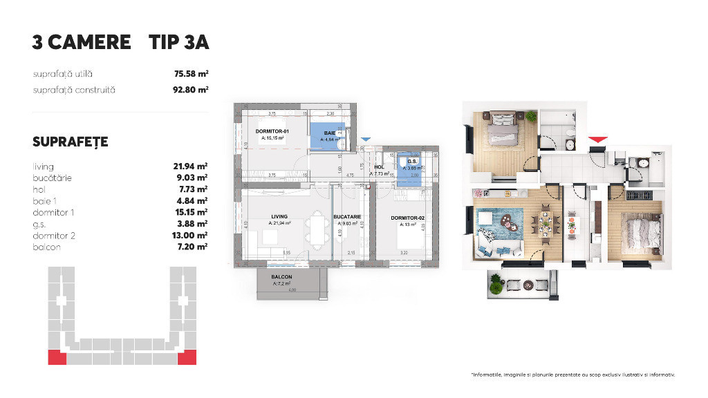 Apartament 3 Camere TIP A in Plaza Residence FAZA 6