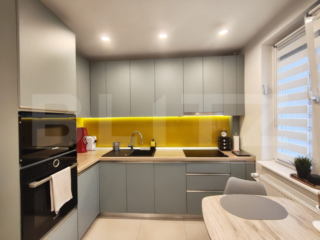 Blitz va prezinta un apartament cu 3 camere, tip C, situat pe strada Sovata, la etajul 8 din 10, intr-un imobil bine pozitionat, cu vedere spre Cris. Locuinta are o suprafata utila de 73 mp (fara balcoane) si beneficiaza de o compartimentare eficienta. In plus fata de camerele principale, exista si o camara amenajata tip dressing, care nu apare in poze, dar ofera un spatiu util de depozitare. Apartamentul dispune de 2 balcoane inchise, dintre care unul a fost integrat in zona de living, rezultand un spatiu de zi mai mare si mai luminos. Proprietatea a fost renovata complet in urma cu aproximativ 3 ani, inclusiv instalatiile electrice si sanitare, fiind finisata modern si intretinuta foarte bine. Se vinde mobilat si utilat, exact cum se prezinta in poze, fiind pregatit pentru mutare imediata. In zona exista locuri de parcare la liber, iar pozitionarea pe Sovata ofera acces rapid catre spatii verzi, plus avantajul unei privelisti deschise spre Cris. Cod ofertă / ID BLITZ: P169607 Id intern: P169607