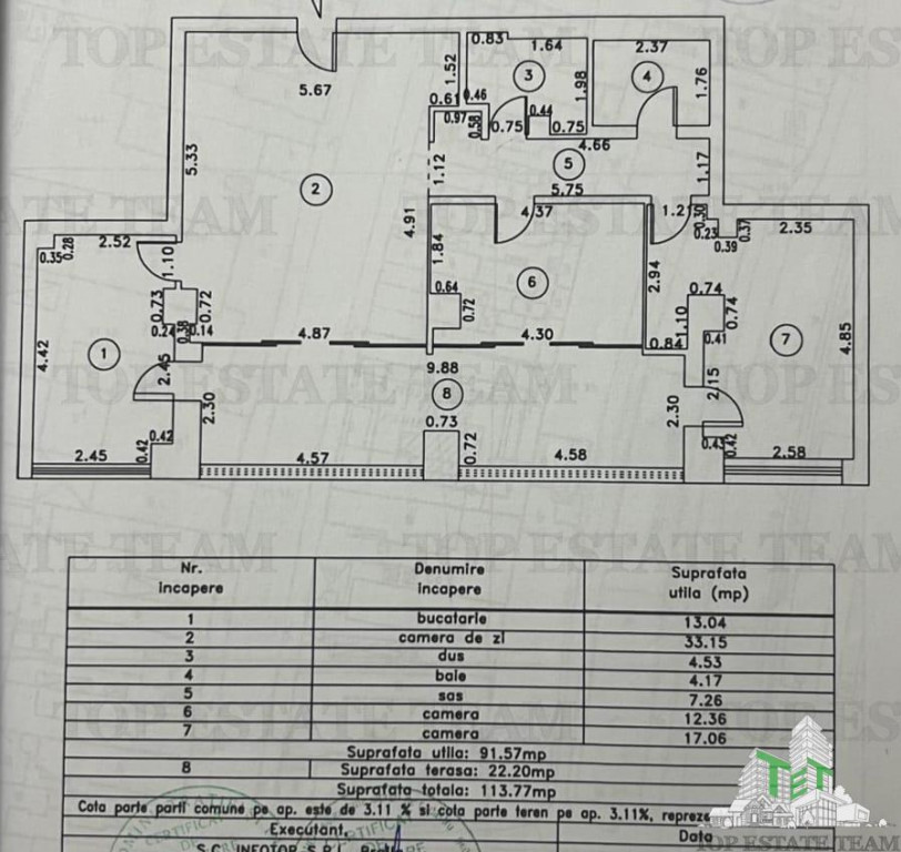 Excelenta prin experienta! Apartament 3 camere, zona ultracentrala. Compartimentarea interioara este de tip decomandat. Apartamentul este situat la etajul 2. Suprafata totala este de 120 mp. Apartamentul are un living spatios, 2 dormitoare, 1 bucatarie, 2 bai, 1 logie inchisa cu tamplarie PVC. Imobilul in care este amplasat apartamentul are 6 etaje si lift. Proprietatea dispune de toate utilitatile necesare. Finisaje: stare interioara - lux: tamplarie PVC cu geam termopan - culoare maro, parchet, gresie, faianta, usa intrare din metal, usi interioare din lemn, centrala proprie, calorifere. Apartamentul a fost construit in anul 2017 si se ofera la vanzare nemobilat. Loc parcare - subsol, in proprietate..