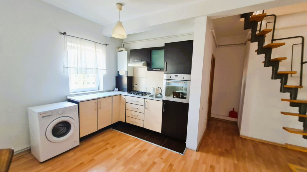 Agentia Smart Imobiliare va propune spre inchiriere un apartament cu 3 camere pe 2 niveluri la mansarda unui bloc din cartierul Vasile Aaron. Apartamentul are o suprafata utila de 56mp. Primul nivel este compus din living cu bucatarie si baie. Al 2 lea nivel este compus din hol si 2 dormitoare si un dressing spatios. In apropiere se gasesc numeroase magazine, farmacii, banci, piata agroalimentara si statii de transport in comun. Pentru informatii suplimentare si vizionari specificati agentului ID-ul anuntului: P16857 Id intern: P16857