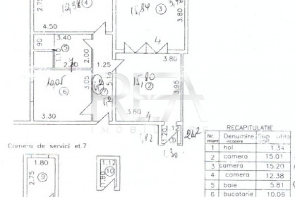 REA Imobiliare Apartament cu 3 camere, in zona Dacia, etaj 7/8, decomadata, finalizata in anul 1947. Suprafata utila totala de 73,21 mp. Sistem de incalzire -> centrala proprie. Risc seismic 1. Configuratie: 2 dormitoare, sufragerie, bucatarie, baie, boxa, camera de serviciu. Transportul in comun -> 2 min pana la statiile STB si 10 min pana la statiile de metoru Stefan cel Mare si Piata Romana. Pentru detalii si vizionari va rugam sa ne contactati specificand codul de identificare P10152. Id intern: P10152