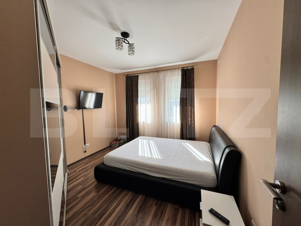 Blitz vă propune spre vânzare un apartament cu 3 camere, complet decomandat, situat la etajul 1 al unui bloc construit cu materiale de calitate superioară. Locuința este luminoasă, bine proporționată și eficient compartimentată, oferind un echilibru foarte bun între zona de zi și spațiile de odihnă. Este potrivită pentru o familie sau pentru cei care își doresc confort și liniște. Compartimentare: Living generos, aproximativ 25 mp Două dormitoare Bucătărie open space Baie cu cadă Hol spațios (aprox. 6 m lungime) Balcon Apartamentul beneficiază de dotări moderne, care contribuie atât la confort, cât și la costuri reduse de întreținere: -Încălzire în pardoseală, cu termostat individual în fiecare cameră -Aer condiționat -Rulouri exterioare din aluminiu -Plase anti-insecte la toate geamurile -Mobilier realizat la comandă din MDF -Electrocasnice din gamă premium Se vinde complet mobilat și utilat. Un aspect important: apartamentul nu a fost închiriat niciodată, nu s-a fumat în interior și nu au fost animale de companie. Proprietarii sunt cei inițiali, din faza de construcție „la roșu”, ceea ce oferă un plus de siguranță privind istoricul locuinței. Parcare: Loc de parcare situat chiar în fața intrării Posibilitate de parcare suplimentară în zonă, fără dificultăți Zona este foarte bine poziționată, cu acces rapid către puncte de interes: -Kaufland și Mega Image la aproximativ 200 m -Două spălătorii self-wash la circa 50 m -Auchan și Hornbach în apropiere -Grădinițe (private și de stat), școală, liceu și British School of Timișoara -Iulius Mall la aproximativ 1 km -Stații de autobuz și restaurante, inclusiv McDonald’s Cartierul este liniștit, cu zonă verde îngrădită și puțini vecini, oferind un plus de intimitate. Cod ofertă / ID BLITZ: P165313 Id intern: P165313