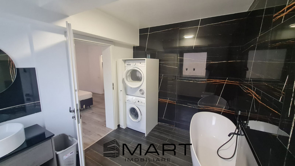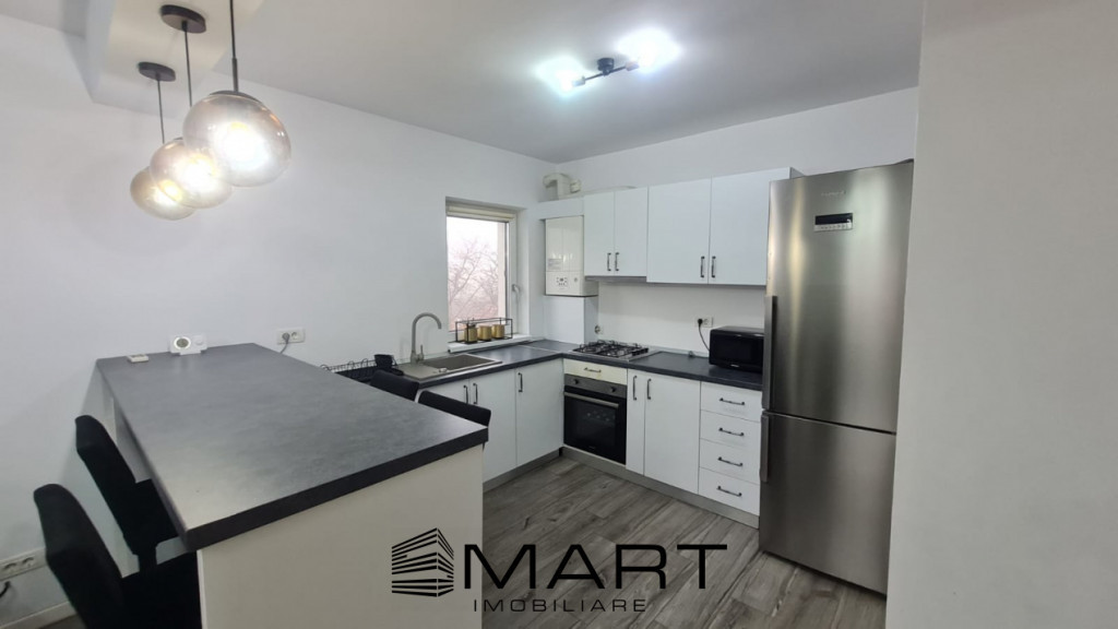 La nivel de dotări, apartamentul beneficiază de curent electric, apa, canalizare, gaz, sistem de încălzire prin centrala proprie si climatizare, ferestre tip pvc, termopan, pardoseli parchet, pereți finisați cu , izolatie , usă de intrare de metal, respectiv uși de interior lemn. Apartamentul se închiriază mobilat complet, cu bucataria mobilata, aspect care permite viitorului chiriaș să se mute rapid și cu investiții minime în amenajare.