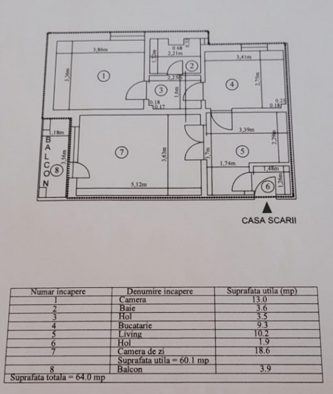 Se ofera spre vanzare apartament cu 3 camere în Zona Spitalului Judetean ???? Descriere Detaliată: Tip proprietate: Apartament cu 3 camere, model semidecomandat- ETAJ 10 cu lift Zona: Asirom-Scoala nr.2 Suprafață utilă: 64 mp (inclusiv balconul de 3.87 mp) Orientare: SUD-VEST Apartamentul destine centrala termica, tamplarie termopan si balcon inchis. Apartamentul a fost renovat in 2018. De asemenea, este izolat termic, detine geam baie , iar instalatiile electrice si sanitare au fost schimbate. *Detine boxa. *Disponibiliatate imediata. Adresă sediu agenție: Piața Mihail Kogălniceanu 2, COMPLEX PIETRICICA -ETAJ 1, Piatra Neamț Număr de Telefon: 0757 030 616 Pentru mai multe informații și pentru a programa o vizionare, vă invităm să ne contactați la numărul de telefon de mai sus sau să ne vizitați la sediul nostru , Piața Mihail Kogălniceanu 2, Piatra Neamț Id intern: P119322