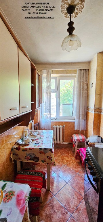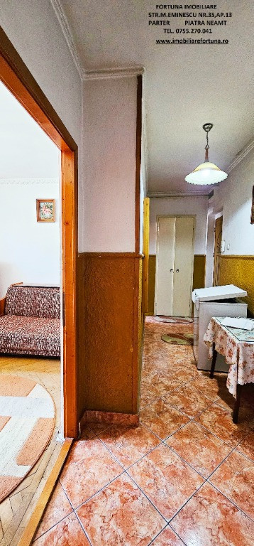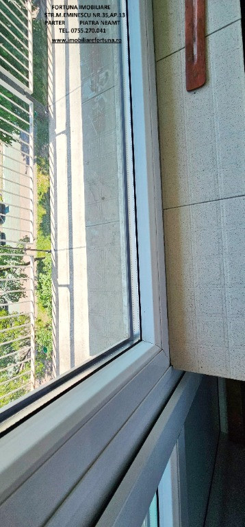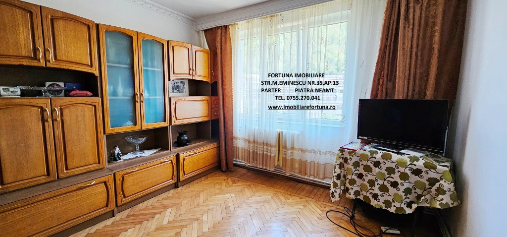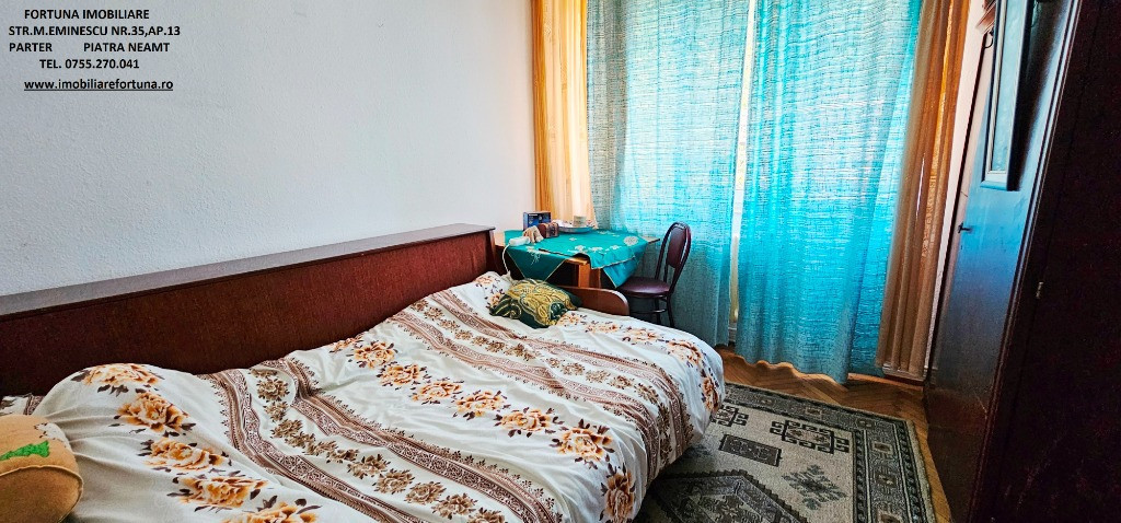 APARTAMENT CU 3 CAMERE SITUAT ÎN ZONA UNIC, 67.000 EURO Pentru a veni în sprijinul celor aflați în căutarea unei locuințe care să fie amenajată după propriile gusturi și necesități, FORTUNA IMOBILIARE oferă posibilitatea de a opta pentru acest apartament pe structură semidecomandată, compus din 2 holuri, bucătărie, camera de zi,baie cu aerisire naturala, 2 dormitoare și logie, situat la etaj intermediar, în bloc cu 4 nivele,în zona centrală a municipiului Piatra Neamț. Imobilul este poziționat pe mijloc, are suprafața totală utilă de 63,44 mp ( 56,70 mp suprafața utilă + 6,44 mp logie ). Este prevăzut cu ușă metalică la intrare, interfon, termosistem exterior, centrală termică, termopan, gresie, faianță, parchet, uși interioare din lemn masiv. Preț 67.000 euro. Pentru o prezentare detaliată a acestei oferte, furnizarea unor informații suplimentare referitoare la situația juridică / identificarea imobilului și programarea unei vizionări, vă invităm la sediul nostru, Fortuna Imobiliare, situat pe str. M. Eminescu, nr. 35, ap. 13, parter, lângă fostul Tribunal, tel. contact 0755.270.041. Your comfort is our priority ! Oferta noastră completă o găsiți aici: https://imobiliarefortuna.ro/