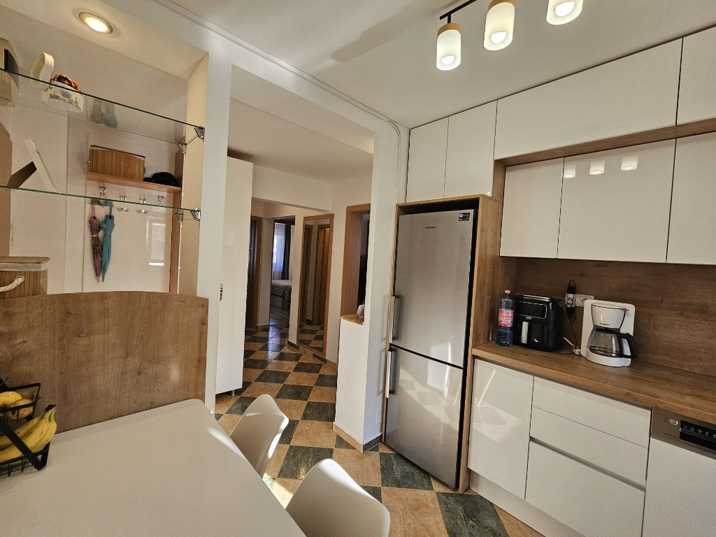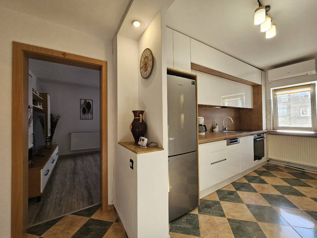 Green House va propune spre vanzare un apartament de 3 camere, cu 2 bai si 2 balcoane intr-un bloc din anii 80 intr-o zona ultracentrala . Exista apartamente care arata bine in anunturi dar exista si apartamente care, din momentul in care intri, te fac sa spui: aici pot sa traiesc ani buni . Acest apartament de 3 Camere nu este doar un apartament,este rezultatul unei transformari inteligente intr-un spatiu aerisit, functional si modern, gandit pentru o familie care vrea confort real, nu doar metri patrati. Situat intr-un bloc de 4 etaje , intr-o zona considerata cea mai bine pozitionata din oras la etajul 3 din 4, acest apartament de 3 Camere beneficiaza de lumina naturala generoasa si o vedere deschisa care ofera intimitate si liniste. Cu o suprafata utila de 68 mp, spatiul a fost optimizat impecabil. Livingul integreaza armonios zona de relaxare, . Canapeaua generoasa devine centrul serilor in familie.Bucataria este echipata cu mobila noua, electrocasnice BOSH noi ,centrala termica din septembrie 2025, aer conditionat Daikin, masina de spalat vase . Toate usile interioare si cea de la intrare sunt usi noi Barbu facute pe comanda. Apartamentul dispune de doua bai, complet echipate. Fiecare detaliu transmite ideea de investitie facuta pentru locuire pe termen lung, nu pentru vanzare rapida. Bloc construit in 1980, structura solida, vecini civilizati, acces rapid catre zona Pietonala, Liceul Decebal, Liceul Pedagogic si zone importante. Acest 3 Camere se vinde mobilat si utilat modern, exact ca in fotografii. Nu necesita investitii suplimentare. Doar mutarea.Situat in zona ultracentrala , intre Bulevardul Decebal si Bulevardul 1 Decembrie , cu 2 parculete pentru copii, parcari la liber, apartamentul este cea mai buna investitie atat pentru o familie cat si pentru inchiriere fiind foarte luminos,cu un confort termic ridicat si cheltuieli mici Imagina-ti diminetile cu lumina filtrata prin geamurile largi, mesele in familie si serile linistite la etajul 3, departe de agitatia strazii. Acum revino la prezent si intreaba-te: cat de des apare un apartament complet echipat, bine compartimentat ? Acest apartament este alegerea ideală pentru cei care își doresc o locuință modernă, eficientă energetic și poziționată excelent, in centrul orașului Daca simti ca este potrivit pentru tine, programeaza o vizionare. Unele proprietati nu asteapta mult timp in piata. Acesta este genul de apartament care se decide rapid.